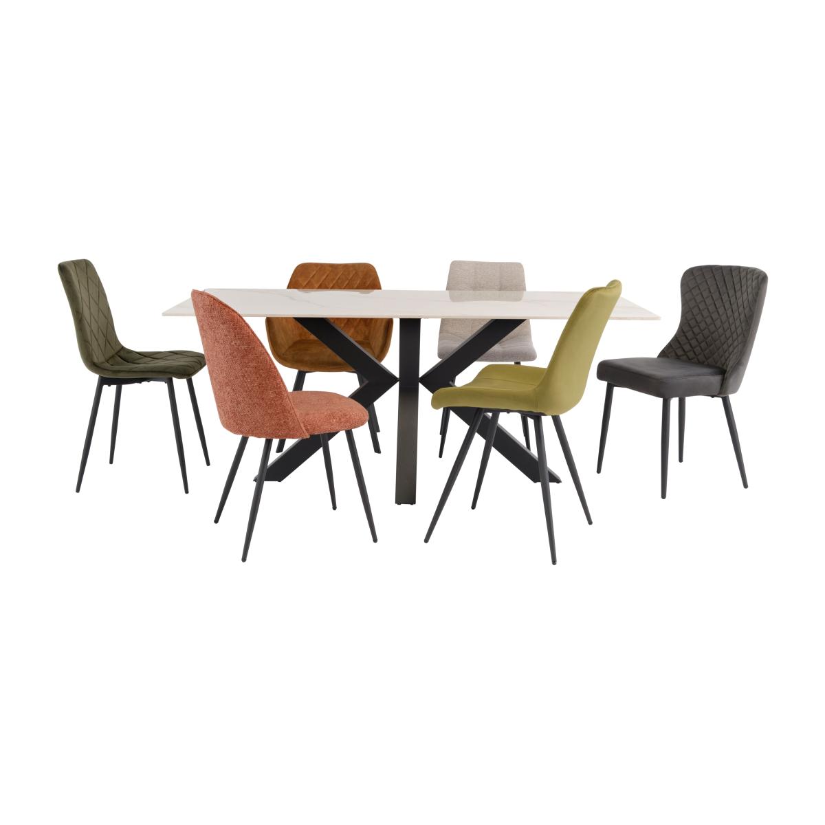The Cora six-seater is a versatile choice for contemporary and modern interiors, thanks to its sleek sintered stone surface in classic white or bold black. I love its clean, minimalist silhouette which can effortlessly anchor a variety of colour schemes and decor styles. It works particularly well in open-plan kitchens or dining rooms aiming for a sophisticated vibe. For styling, pairing it with a mix of textured chairs in muted or jewel tones adds visual interest while maintaining a chic look. Practical tips include combining it with comfortably upholstered chairs for extended dinners or contrasting the smooth surface with textured tableware and centrepieces to add layers of detail. This table strikes a great balance between style and functionality, making it a focal point for family meals or entertaining alike.