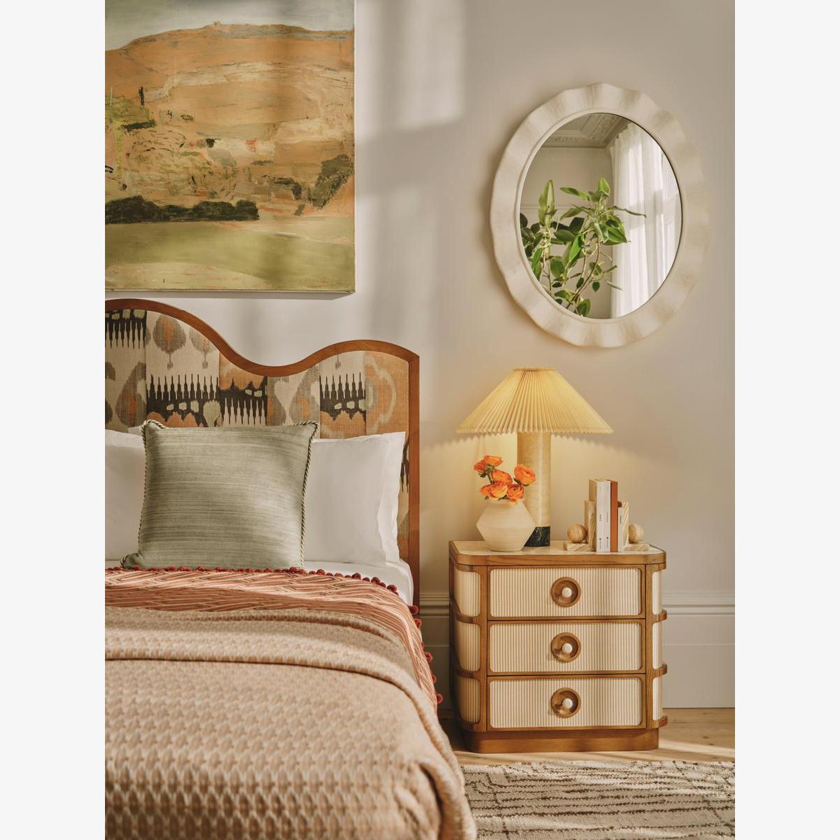 I love the Cora bedside in Royal Diana marble for its versatility and understated elegance. Its sophisticated marble top brings a touch of luxury to both classic and contemporary interiors, making it a great statement piece without overwhelming the space. It works particularly well in bedrooms with neutral tones and soft textures, adding a subtle layer of opulence. For styling, try pairing it with minimalist lamps or small decorative objects-think textured ceramics or layered books-to keep the surface practical yet inviting. Its durable surface also makes it ideal for everyday use, seamlessly blending form and function in a stylish bedroom setting.