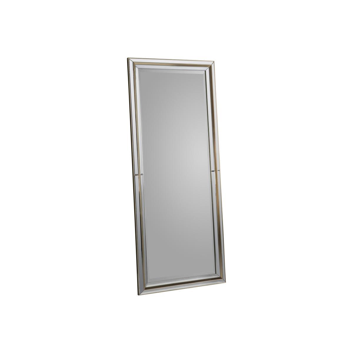 The Cora Leaner mirror combines simple modern lines with luxurious detailing, so it suits both classic and modern homes and many styles of décor. Made to lean against the wall, this large mirror is an elegant – and very useful – accessory in the bedroom, and a decorative finishing touch in the living room or hallway where it makes any space feel larger. Imposingly tall, this beautiful full-length mirror has a double mirror strip frame with pale gold detailing. Dimensions. Width: 63cm(25in). Depth: 4cm (2in). Height: 152cm (60in).