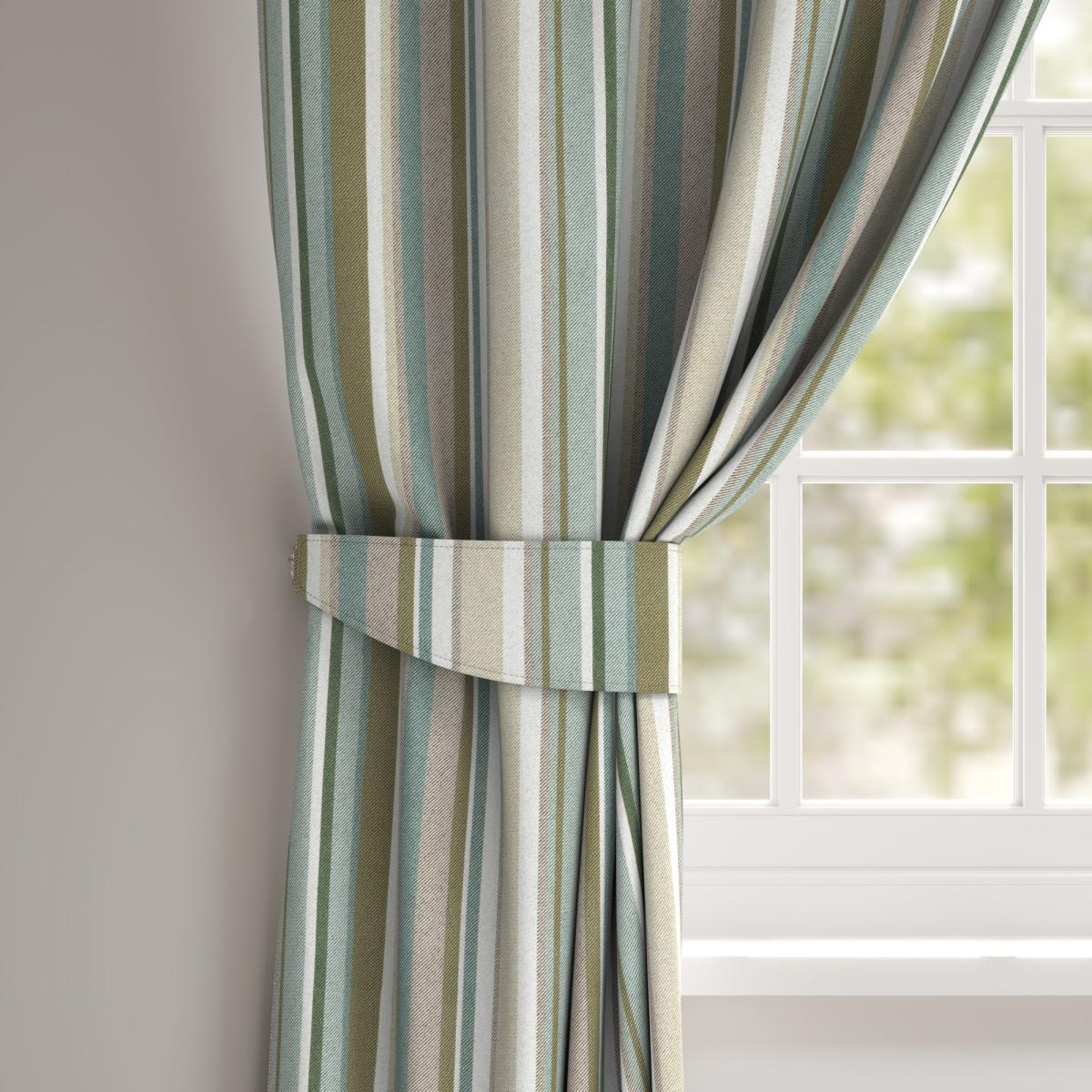 Revamp your curtains with the timeless appeal of our Cora Pattern Made to Order Tiebacks. Expertly crafted from fire-retardant fabric, these tiebacks seamlessly blend safety and style, ensuring a neat and polished appearance for your curtains. Individually sold, each tieback provides the option of a sleek plain or an elegant piped edge, allowing you to customise the look according to your preferences. The versatile Cora design showcases a classic stripe that offers both design and warmth. The mix of warm tones provides multiple choices to suit any room setting and colour scheme, adding a modern touch to any space. These tiebacks are suitable for both residential and commercial use, reflecting the high standards of quality and sophistication proudly made in the UK. Available in both a plain and piped design, this tieback can be paired with our matching Made to Measure Curtain to give your home, office or commercial space a beautifully co-ordinated finish. Book an appointment with one of our expert consultants who will guide you through the process of creating your very own Made to Order Tieback. *If you are unsure on testing requirements for your chosen environment, check with a qualified fire officer what testing is required & that this meets your needs.