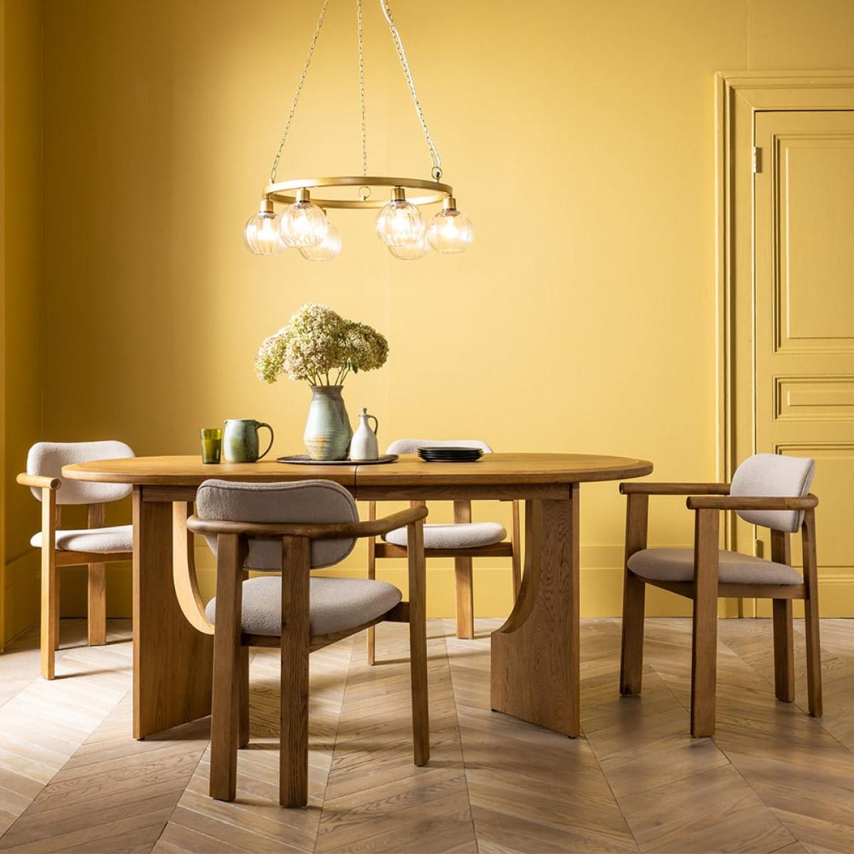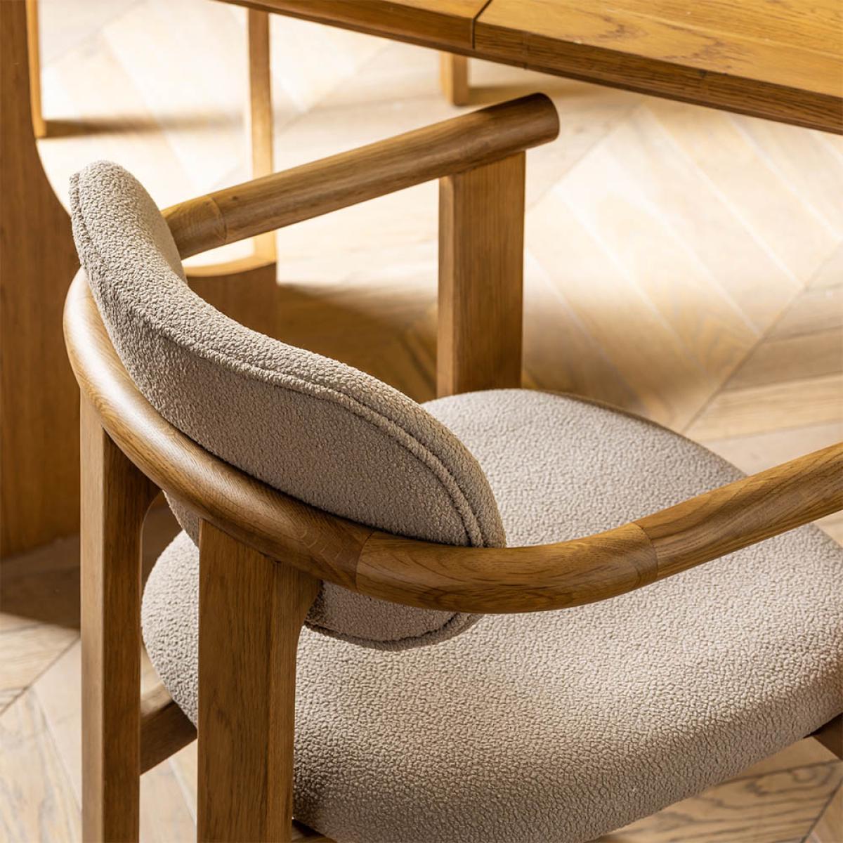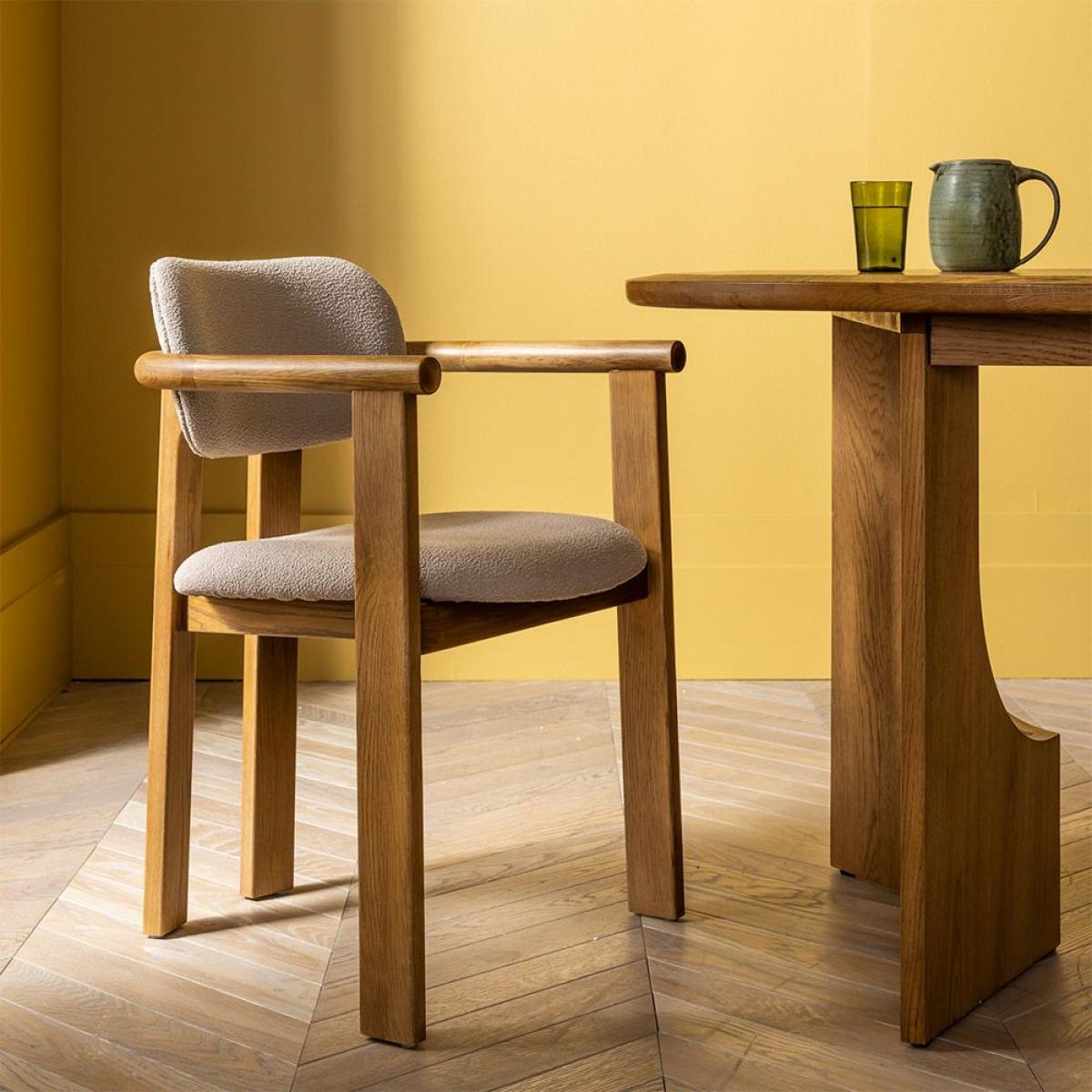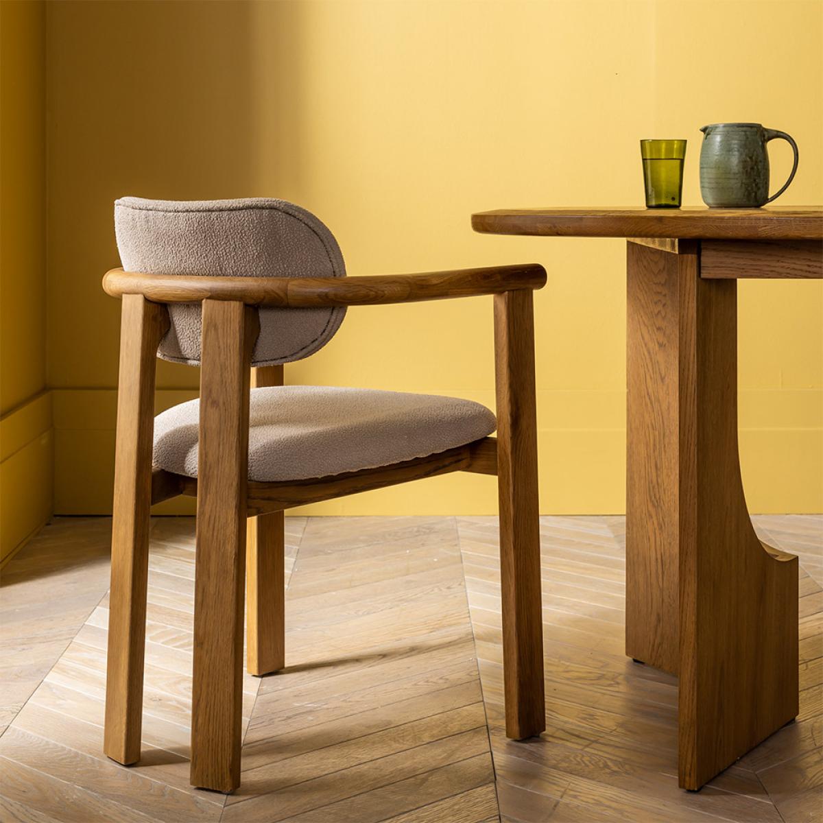 Our boucle and oak dining chair is worth making space at the table for. Curved-back dining chairs like Cora are on-trend but also have a timeless, mid-century appeal. These solid honeyed-oak chairs are characterised by a swooping backrest that cradles your body comfortably, combined with neutral cream boucle upholstery to add an extra layer of luxury. Elegant legs add a little something extra. It’s made from solid oak that’s built to last in a warm bourbon finish and pairs well with the Umi extending table to complete the look. Pull up a seat for the best seat in the house. Also available in olive green boucle