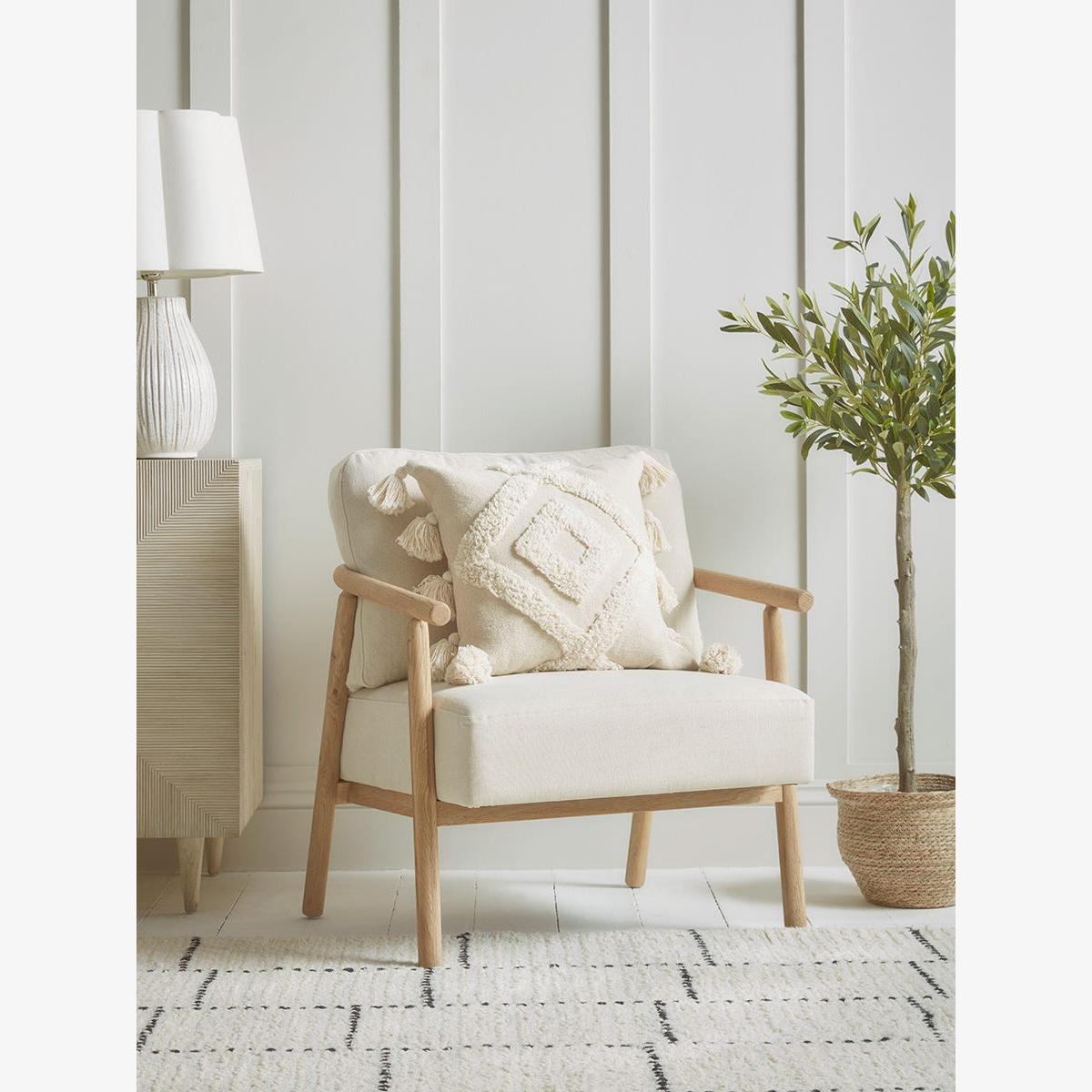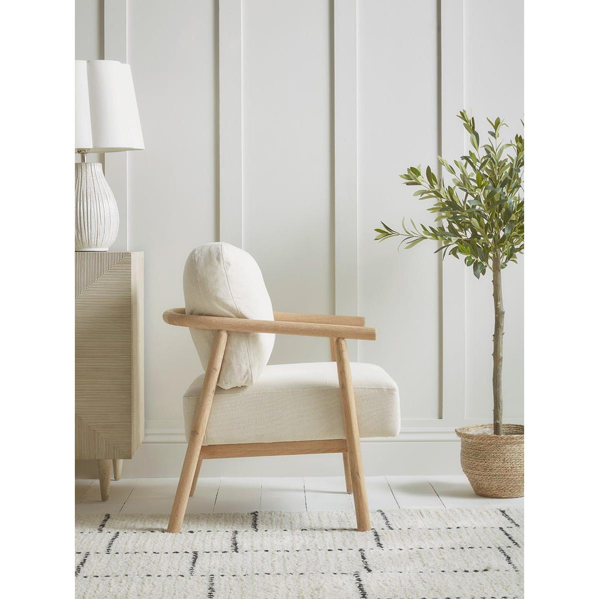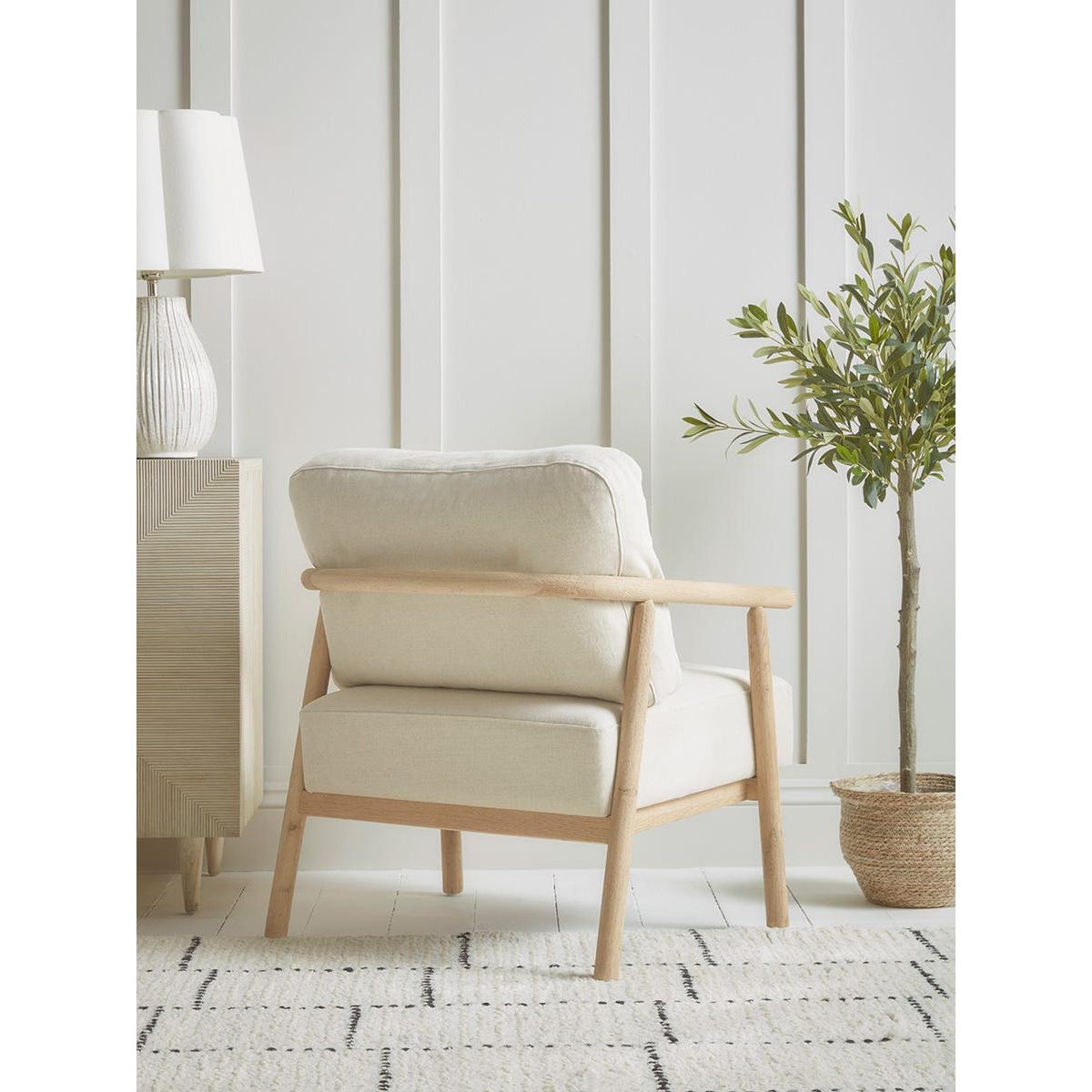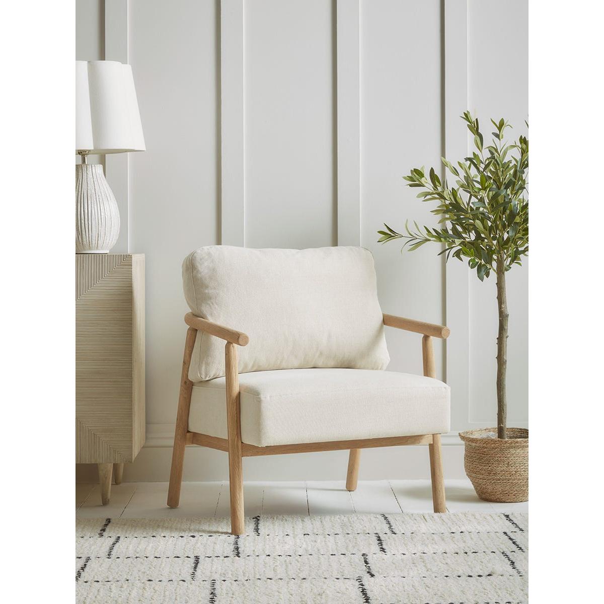 I’m a fan of this occasional chair for its clean lines and light oak frame, which slot straight into Scandi, coastal or minimalist schemes. The neutral upholstery makes it easy to introduce texture through cushions or a soft throw - try a woven cushion in muted tones to add interest without overwhelming the simplicity. In practice, pair it with a slim side table and a sculptural lamp for a reading corner, or position it next to a houseplant to soften the look. Its compact size means it works equally well in a snug living room or as extra seating in a bedroom.