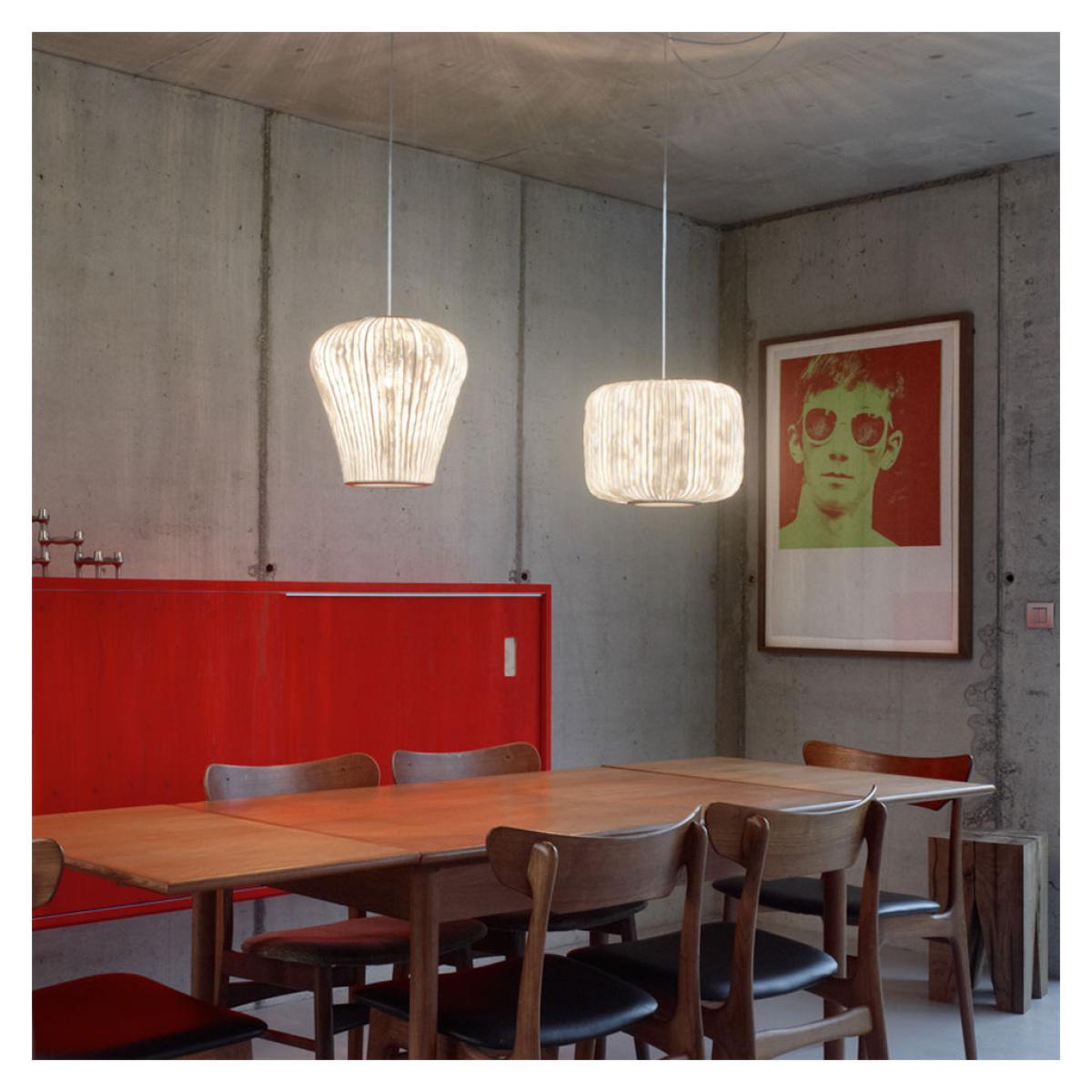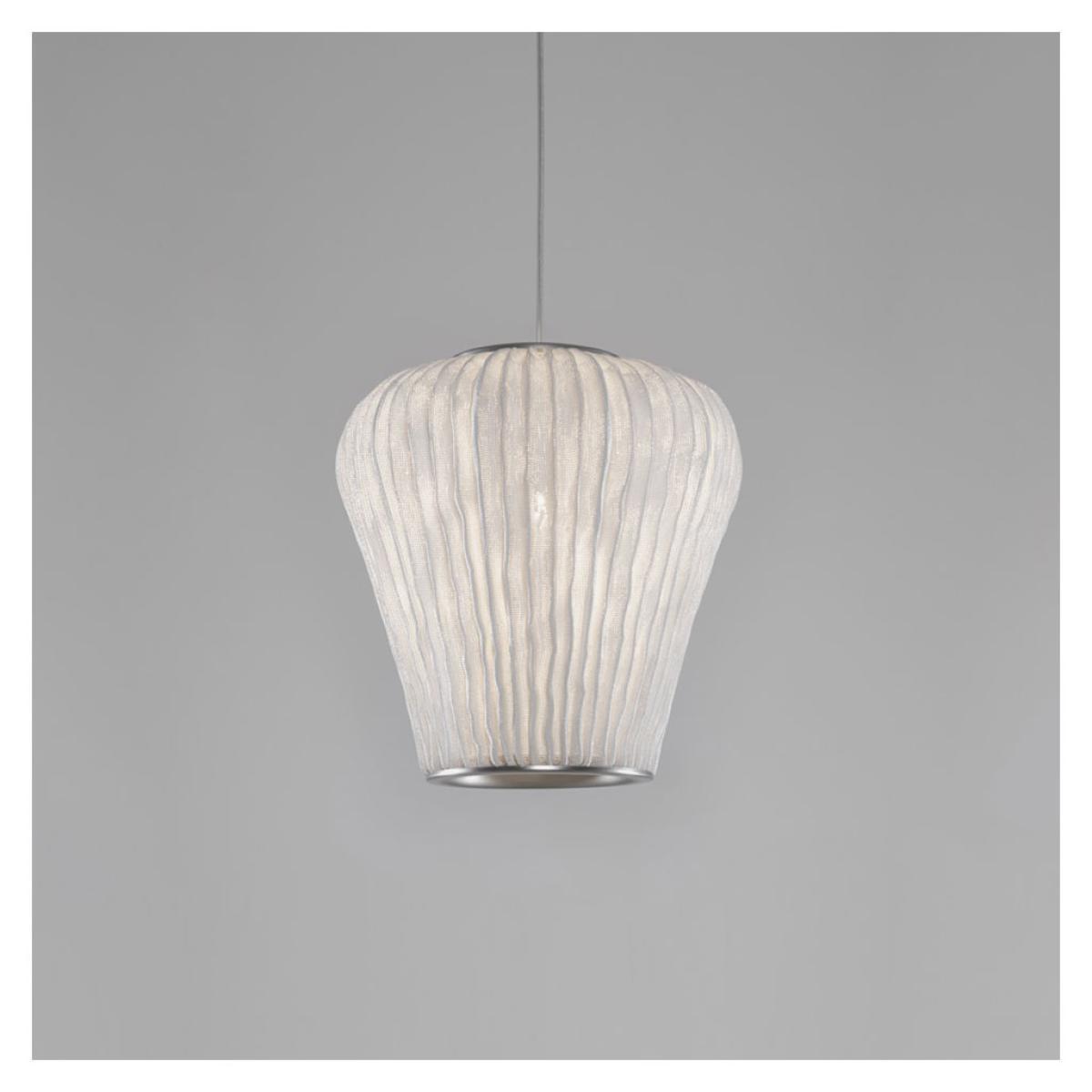 The refined Coral Cay Pendant light in white was designed by Arturo Alvarez and is inspired by the beauty of the coral reef, with an organic form crafted from an innovative Simetech® woven stainless steel mesh. A textural and ambient addition to any space, the Coral Cay Pendant makes up part of the Coral Collection, a series of pendant lights inspired by the unique organisms of reefs and sea beds. Crafted with defined lines in a narrow pendant design, the shade is made with Simetech®, a silicone covered woven stainless steel mesh that diffuses the light to an ambient glow. Beginning with cold steel mesh, this typically resistant material is moved and folded into elegant, fluid curves using intricate techniques developed by Alvarez himself. Awarded of the ‘Best of Year’ 2014 by Interior Design magazine, Simetech® is used on each of Alvarez’s Coral pendants and allows the usually resistant steel mesh to become malleable, creating a natural, unique finish on each piece. Pieces from the Coral Collection are available individually and as a set of five. This pendant light requires an E27 max. 100W bulb (not included). Dimmable depending on bulb.