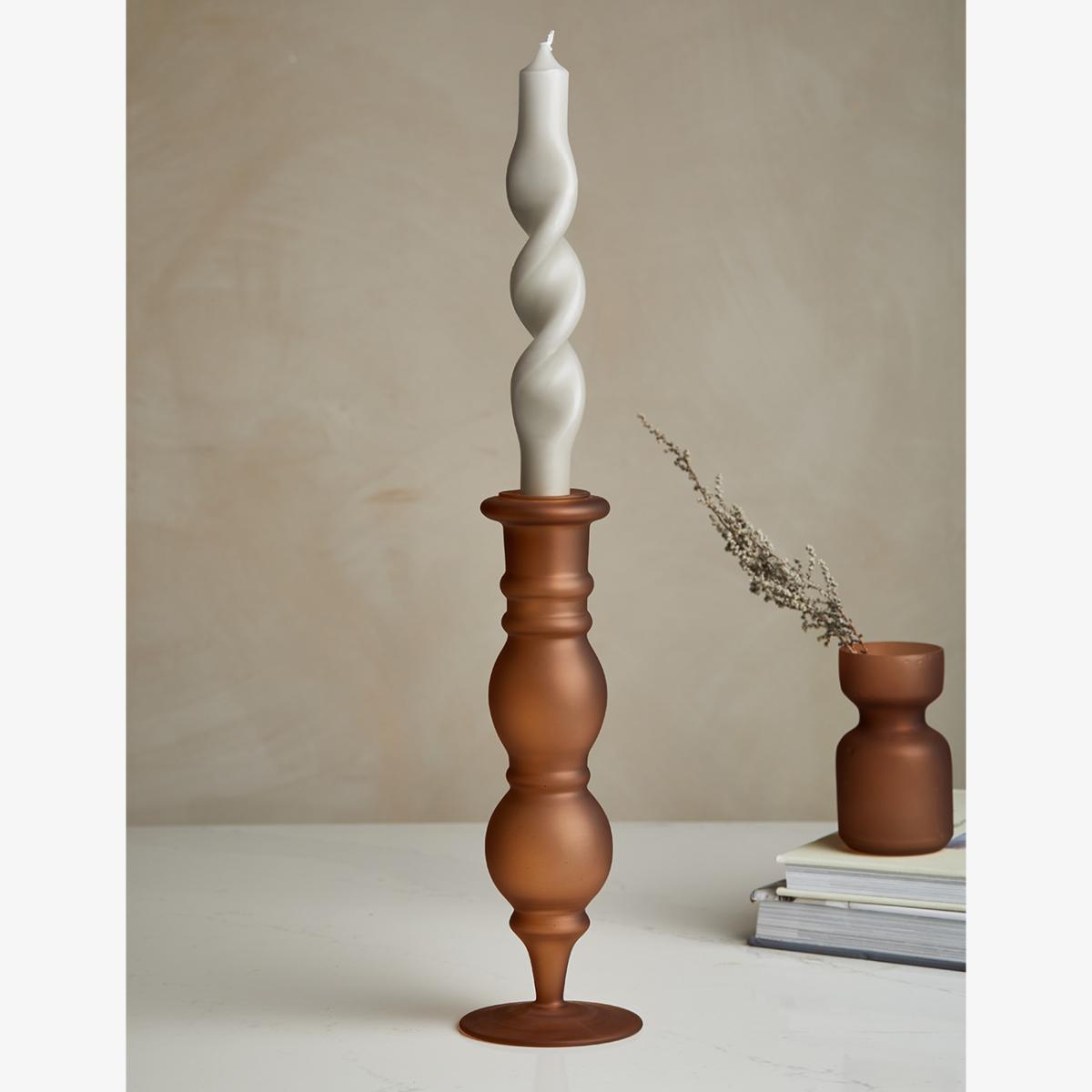 This coral frosted glass candle holder is perfect for displaying our twisted candles around your home. We love the combination of a traditional shape with a bold contemporary colour. Mix and match with our pink and mustard glass candle holders to create a display for your shelf or mantlepiece.