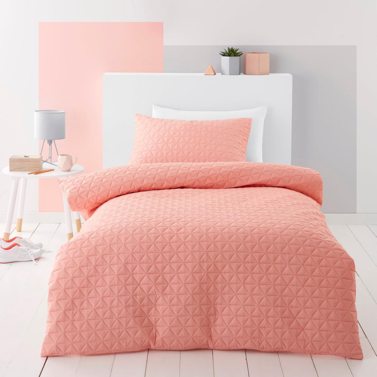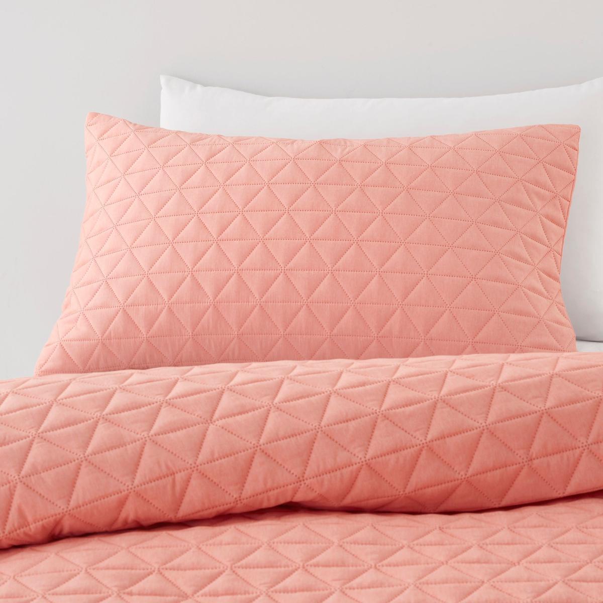 Coral Geo Pinsonic Quilted Duvet Cover and Pillowcase Set Coral