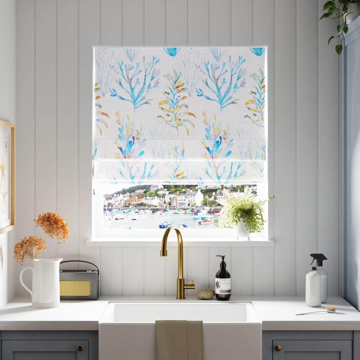 This coral reef Roman blind is a versatile choice that works beautifully in both contemporary and coastal-style interiors. I love how the cobalt blue adds a pop of colour without overwhelming, making it ideal for kitchens, bedrooms, or relaxed living spaces. For a balanced look, pair it with neutral walls and soft textiles to let the pattern stand out, or combine it with navy accents for a more cohesive scheme. Practical styling tips include keeping window sills clutter-free and adding complementary accessories like ceramics or greenery to enhance the seaside vibe. Its made-to-measure feature ensures a perfect fit, and the Roman style provides a neat, tailored appearance that works well with both traditional and modern decor.