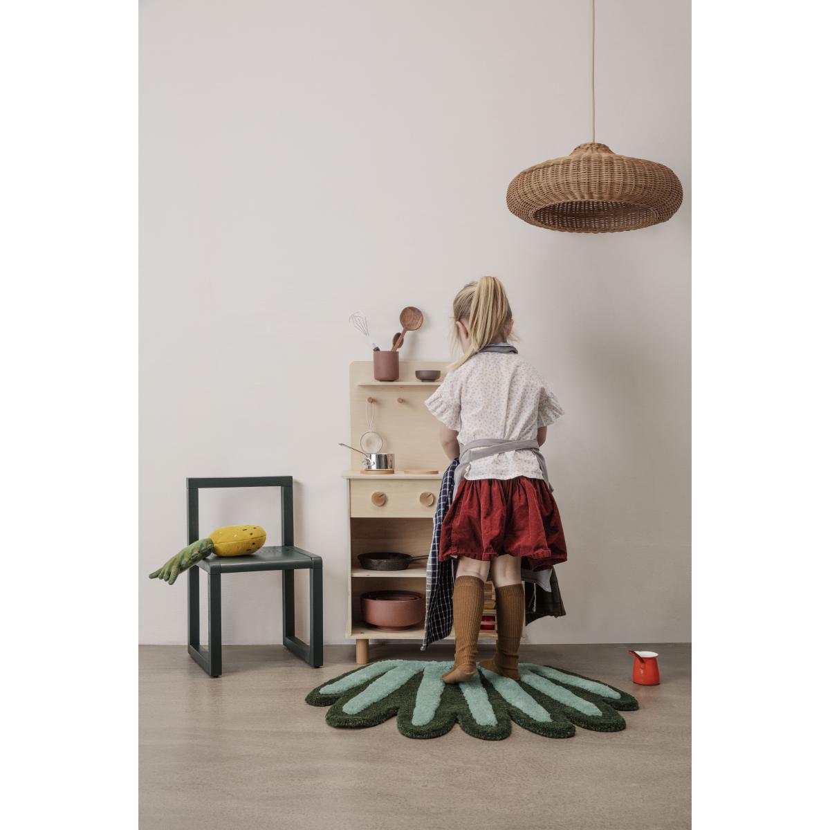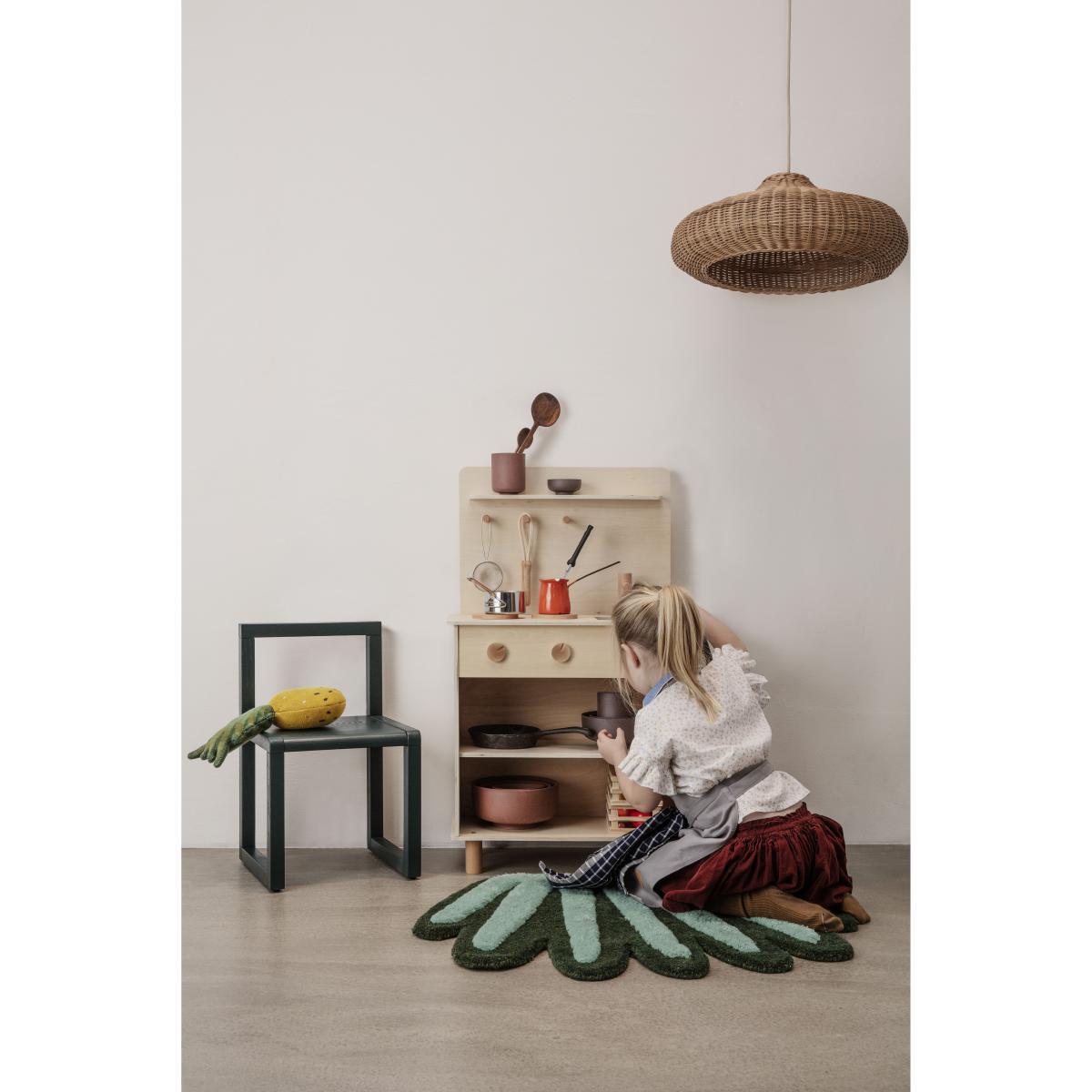 Full of joy and colour, this coral-shaped rug transports you to the depths of the ocean! It will bring a breath of gentle poetry into your toddlers' room. Made of hand-tufted New Zealand wool, this rug has different thicknesses, accentuating its tactility. This contrasting composition stimulates the senses. This rug can be placed on the floor or hung on the wall as a work of art. Inspired by ethnic drapes and wall tapestries, the rug leaves its function as a floor covering behind to display itself on the wall like a frame or painting! For her children's collection, Trine Andersen, the founder and designer of Danish brand Ferm Living, has created a series of objects with simple, colourful patterns with a Scandinavian feel where design, quality and nature are intimately linked.