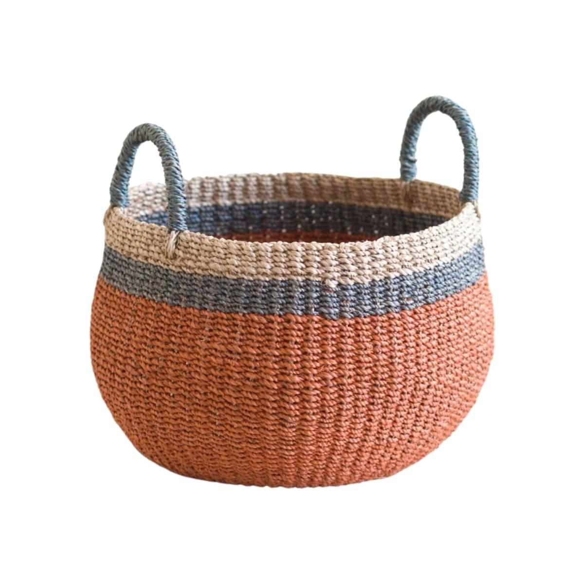 A beautifully crafted coral and sky blue catch-all basket to brighten up your home. Use it to store everyday objects, your favorite houseplants, or even take it to the farmer’s market. Our all-around handwoven baskets are stylish and functional, adding a natural vibe to just about any room. Display individually or pair it with other baskets for more impact. Each piece is carefully handcrafted by artisans in the Philippines, and made sustainably with manila hemp. Every purchase goes towards empowering our artisan communities. Since each piece is handwoven, please expect slight variation in design, color, shape, and size.
