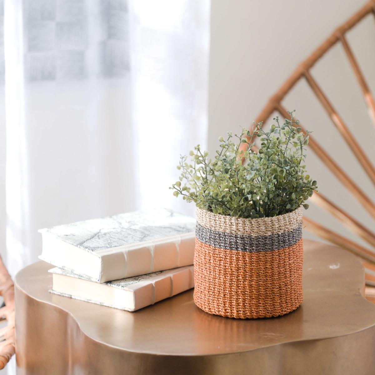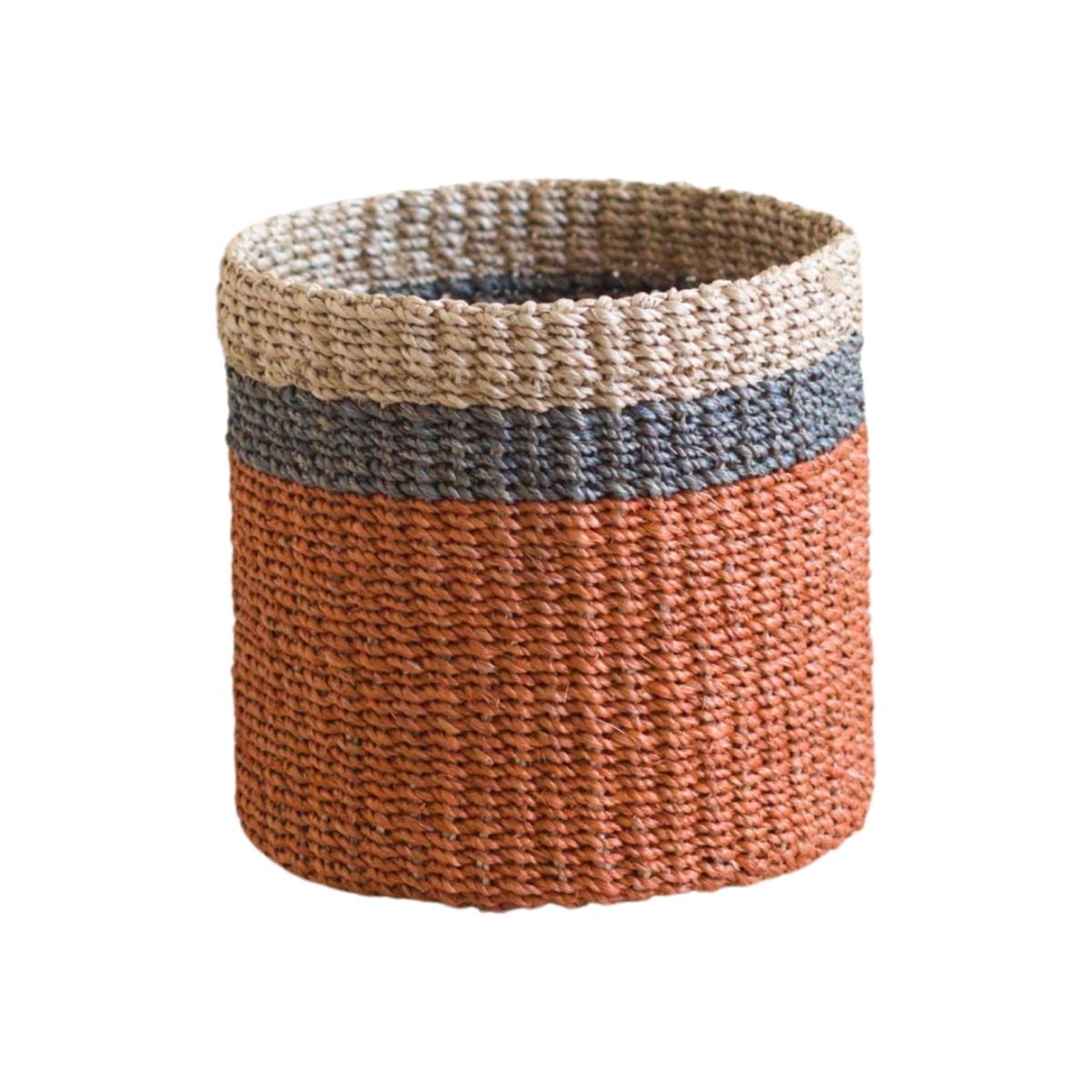 A warm-toned, earthy basket of coral and sky blue to brighten up your home. Use it to store everyday objects or your favorite small houseplants. Our all-around handwoven baskets are stylish and functional, adding a natural vibe to just about any room. Display individually or pair it with other baskets for more impact. Each piece is carefully handcrafted by artisans in the Philippines, and made sustainably with manila hemp. Every purchase goes towards empowering our artisan communities. Since each piece is handwoven, please expect slight variation in design, color, shape, and size.