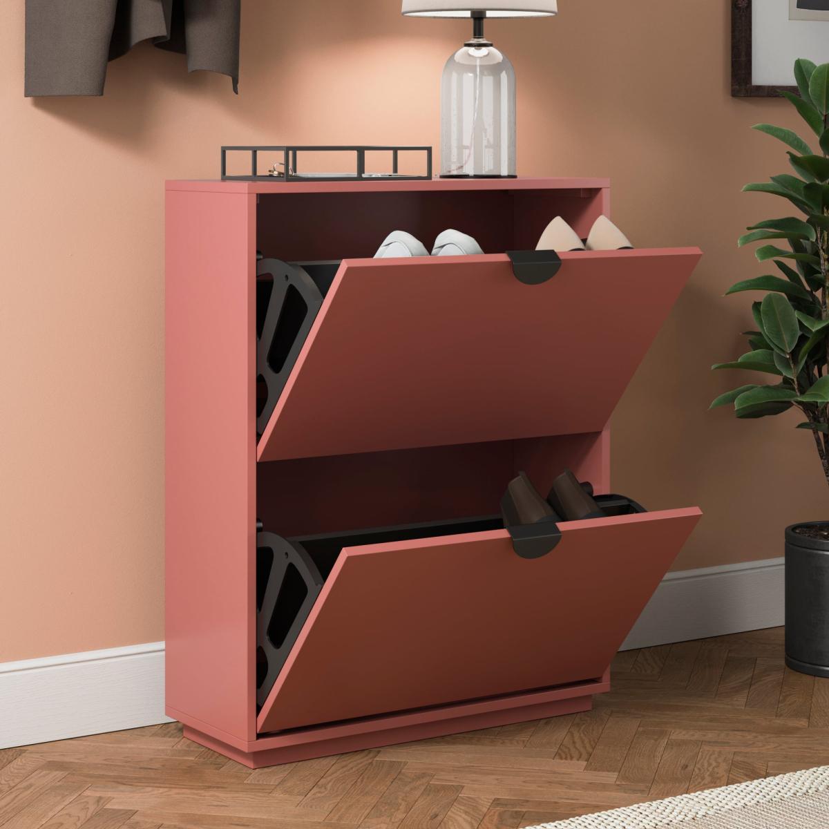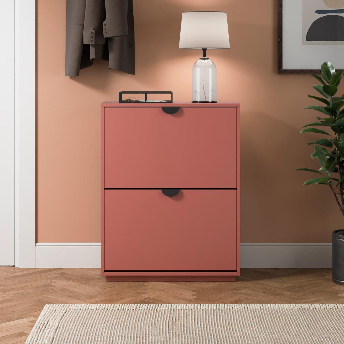 I really like the coral terracotta colour of the corbett 2 door shoe drop, as it adds a warm, inviting touch to any hallway or entryway. It works particularly well in contemporary or eclectic interiors, where a pop of colour can lift the space. For styling, consider pairing it with neutral or muted tones to make the hue stand out, and accessorise with ceramics or textured baskets to keep the look cohesive. Its compact design makes it practical for smaller spaces, while the double drawers offer ample storage for shoes, keeping the area tidy. This piece is both stylish and functional-perfect for creating a clutter-free, welcoming entrance.