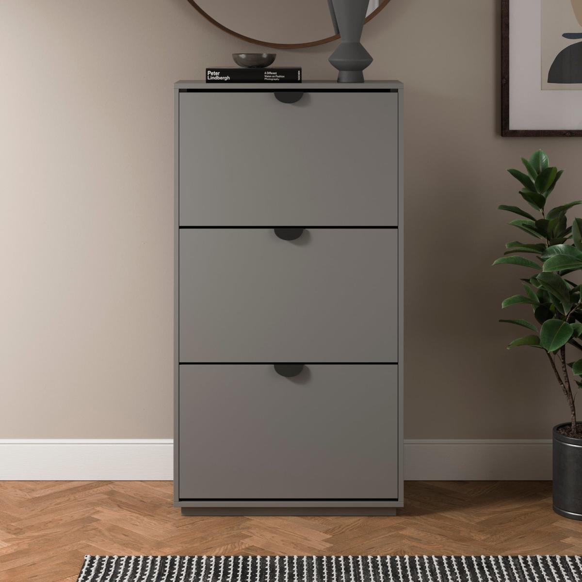 I really like this three-door shoe drop for its clean, contemporary look in a soft grey that complements a range of interior styles, from minimalist to Scandi-inspired spaces. It’s practical as it offers ample storage while keeping shoes out of sight, helping to reduce clutter in hallways or entrance areas. stylistically, it works well with neutral palettes and can be easily styled with decorative trays or baskets on top for added organisation. For a more inviting look, consider pairing it with textured mats or plants nearby to soften the utilitarian aspect. It’s versatile enough to sit comfortably in modern, coastal, or even understated traditional interiors, making it a smart and stylish choice for shoe storage.