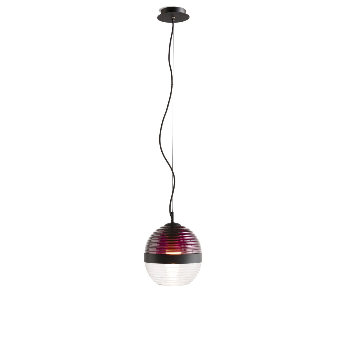The Cord pendant light from German designer Werner Aisslinger is a blend of contemporaneity and tradition. It's made up of a two-tone sphere made by combining two ridged, blown-glass spheres which are connected by a black metal ring. The lower element is transparent, whilst the upper element is coloured. These alternating colours and transparencies give the Cord Lamp the perfect balance between past and present. The Cord pendant light creates a warm, embracing light. The glass shells are created by master glass-blowers. Given the hand-crafted manufacture of the glass, any air bubbles or colour variations are added value for the design.