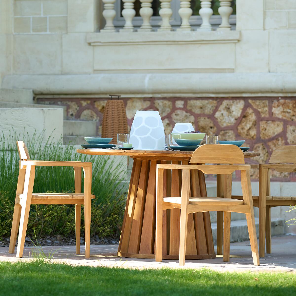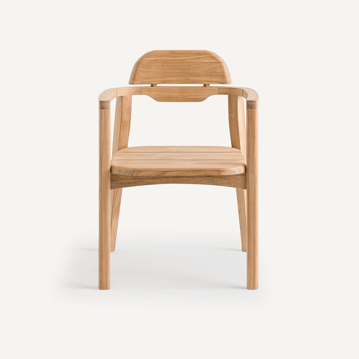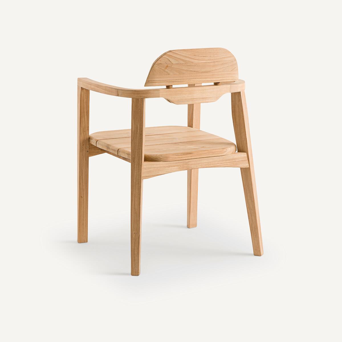 Playing with curves and cuts, smooth and soft touch... the Cordano outdoor garden armchair is made of teak. The structure of the backrest creates an elegant curve that catches the eye. A timeless design by AMPM.Product Details • FSC® Solid Teak • Openwork seat • Slightly tapered legs. Quality Info • Solid teak is ideal for outdoor use. It is impregnated with an oil which ensures its durability and resistance to bad weather and attacks by insects and fungi.. Care Advice • Cleaning: use a damp soft cloth and a little soapy water • Low temperatures are likely to affect the proper functioning and surface condition of your outdoor furniture. • We therefore advise you to store it in a dry, ventilated and closed room.. We strongly advise against the use of a tarpaulin because it will act as an oven and will damage the surface conditions; wood and metal products are particularly concerned. • Before any storage, remember to clean and dry the products well, in order to prevent the appearance of mould or unpleasant odours.. • In any case and regardless of the material, it is not recommended to leave the furniture outside without protection, particularly during bad weather and the winter phase.. Dimensions • Width: 55cm • Height: 80cm • Depth: 56.5cm • Seat: L48 x H44 x D50cm • Weight: 13kgDelivery:. Sold pre-assembled. Note! Please check that all access points are large enough to accommodate your delivery (doors, stairs, lifts). • WOOD FROM SUSTAINABLY MANAGED FORESTS. FSC® certified wood comes from forests that are environmentally, socially and economically well managed. Dimensions and weight of parcel • 1 parcel • L89 x H61 x D62cm, 19kg