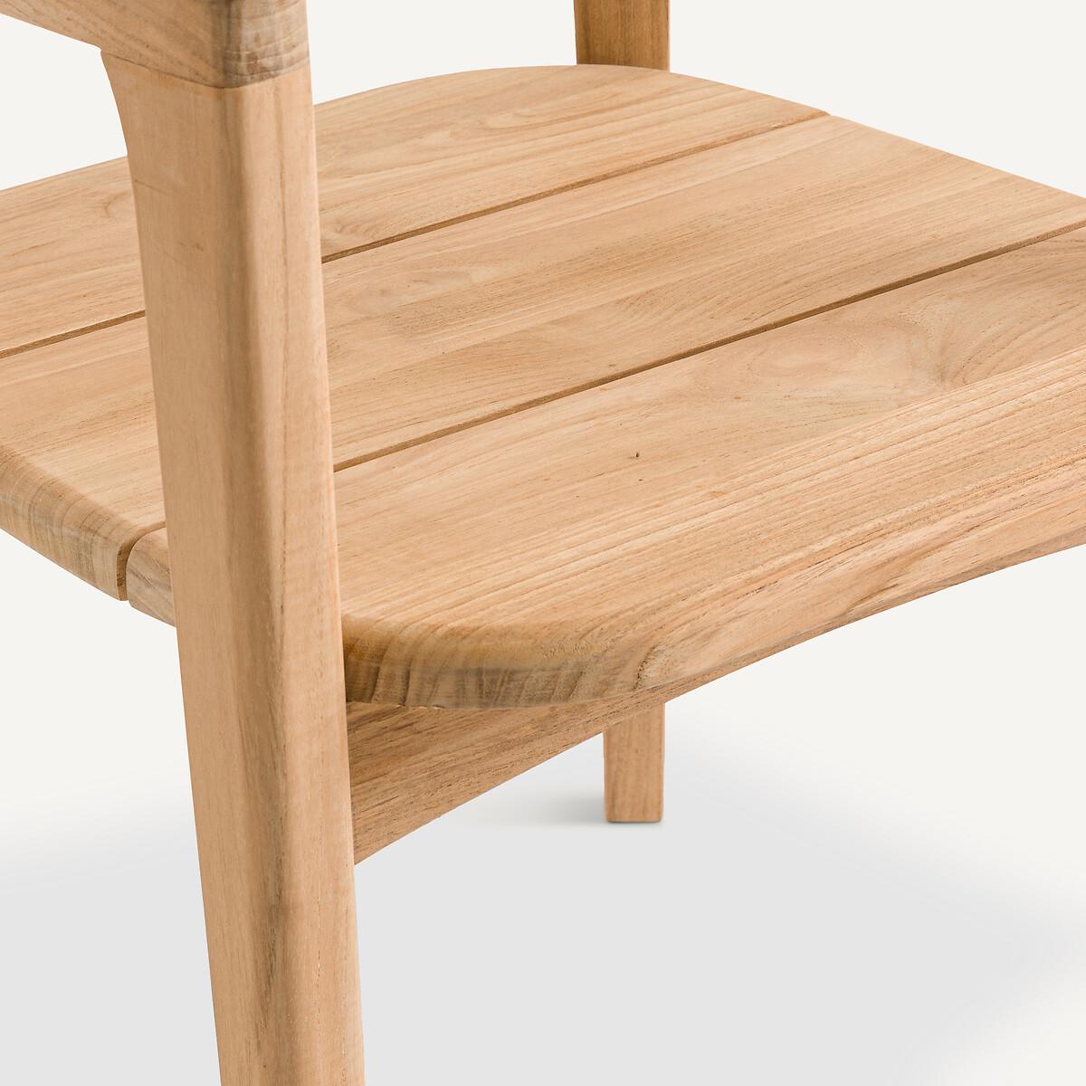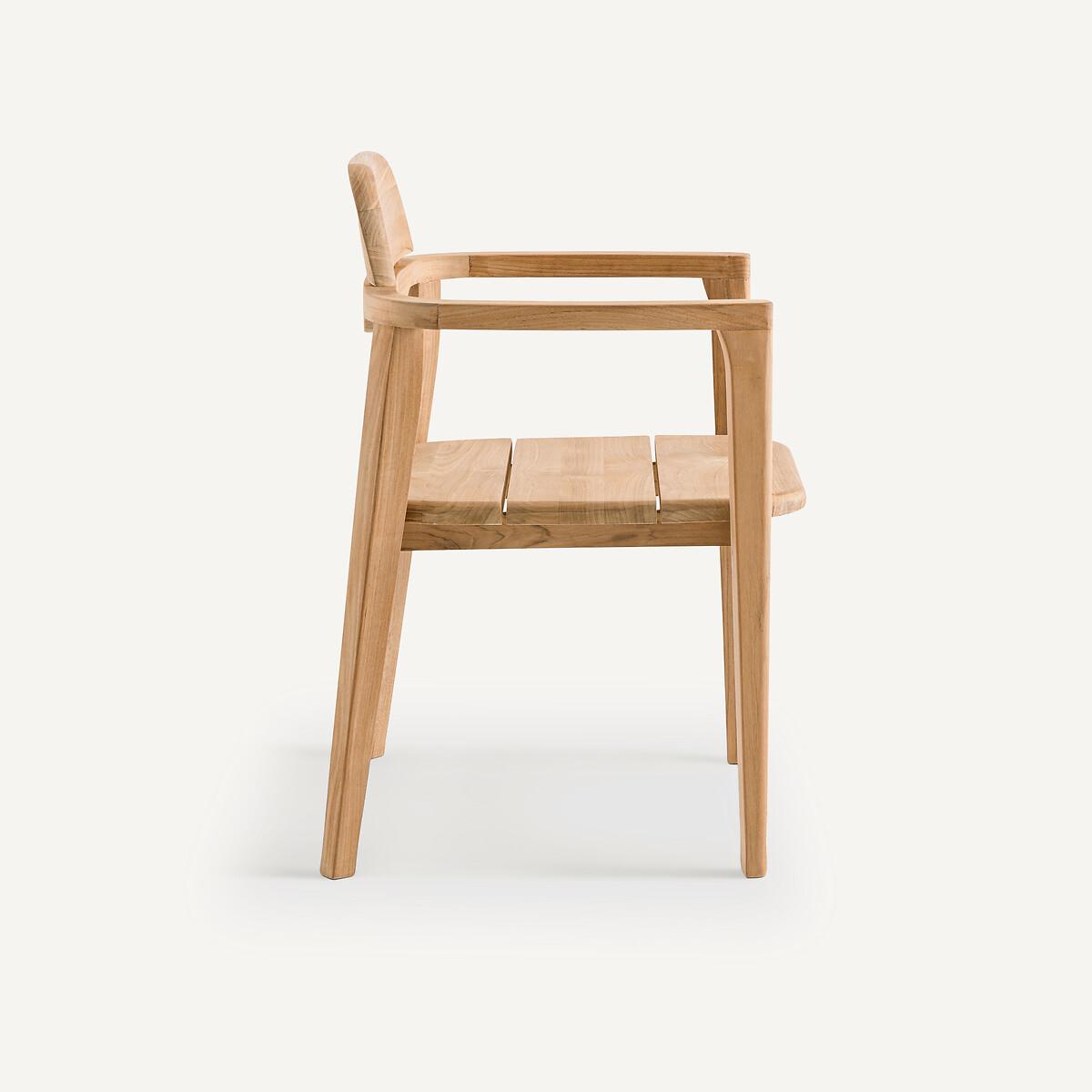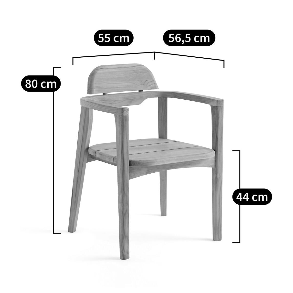Playing with curves and cuts, smooth and soft touch... the Cordano outdoor garden armchair is made of teak. The structure of the backrest creates an elegant curve that catches the eye. A timeless design by AMPM.Product Details • FSC® Solid Teak • Openwork seat • Slightly tapered legs. Quality Info • Solid teak is ideal for outdoor use. It is impregnated with an oil which ensures its durability and resistance to bad weather and attacks by insects and fungi.. Care Advice • Cleaning: use a damp soft cloth and a little soapy water • Low temperatures are likely to affect the proper functioning and surface condition of your outdoor furniture. • We therefore advise you to store it in a dry, ventilated and closed room.. We strongly advise against the use of a tarpaulin because it will act as an oven and will damage the surface conditions; wood and metal products are particularly concerned. • Before any storage, remember to clean and dry the products well, in order to prevent the appearance of mould or unpleasant odours.. • In any case and regardless of the material, it is not recommended to leave the furniture outside without protection, particularly during bad weather and the winter phase.. Dimensions • Width: 55cm • Height: 80cm • Depth: 56.5cm • Seat: L48 x H44 x D50cm • Weight: 13kgDelivery:. Sold pre-assembled. Note! Please check that all access points are large enough to accommodate your delivery (doors, stairs, lifts). • WOOD FROM SUSTAINABLY MANAGED FORESTS. FSC® certified wood comes from forests that are environmentally, socially and economically well managed. Dimensions and weight of parcel • 1 parcel • L89 x H61 x D62cm, 19kg