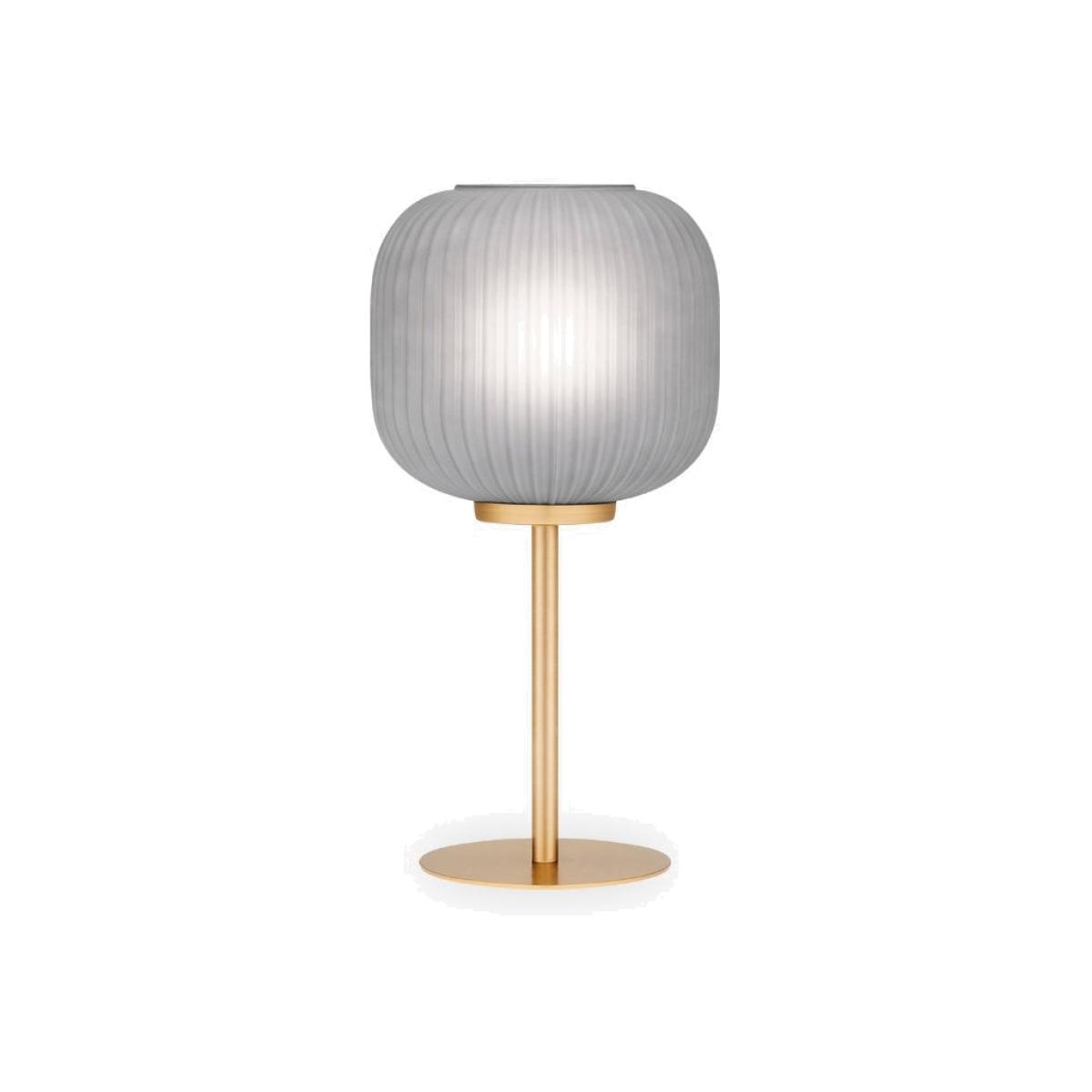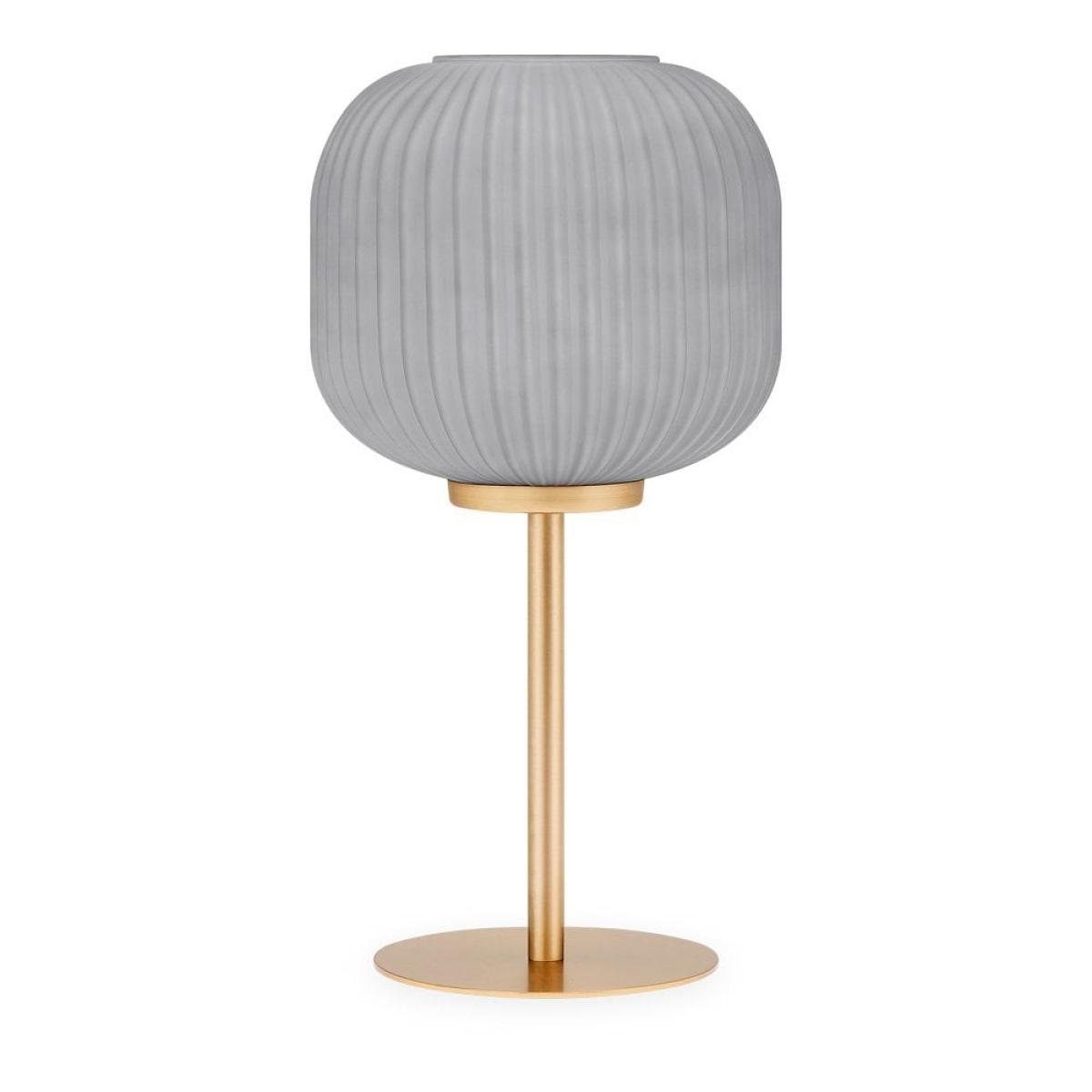 Light up the room with the Cordelia table lamp featuring a smoky grey matte reeded glass shade and brass plated iron base and tube. The Art Deco inspired design is perfect for your living room and bedrooms, giving these rooms an elegant flare. Including the vintage style vertical ridges and brass metal fixture, the Cordelia is also available in a floor lamp for a cohesive design. View The Cordelia Range