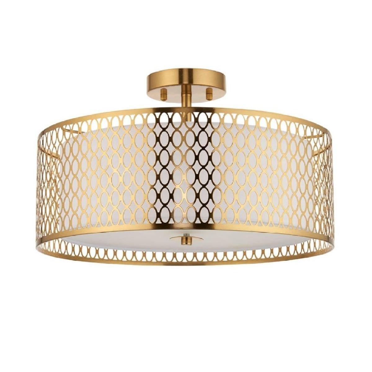 Cordero 3-light flush ceiling light, a classic circular light with a geometric fretwork metal outer, an inner white fabric shade, a gold-effect plated finish and a frosted glass diffuser. The Cordero flush ceiling light is a timeless statement piece, blending classic design with modern detailing. Its circular frame features an intricate geometric fretwork metal outer, beautifully paired with an inner fabric shade for added texture and depth. The gold-effect plate finish lends a touch of luxury, while the frosted glass diffuser ensures soft, even illumination. Perfect for lower ceilings, the Cordero flush light adds elegance and sophistication to living rooms, bedrooms or hallways. Its versatile design complements a range of interior styles, from traditional to contemporary. Cordero 3-light flush ceiling light, a classic circular light with a geometric fretwork metal outer, an inner white fabric shade, a gold-effect plated finish and a frosted glass diffuser. The Cordero flush ceiling light is a timeless statement piece, blending classic design with modern detailing. Its circular frame features an intricate geometric fretwork metal outer, beautifully paired with an inner fabric shade for added texture and depth. The gold-effect plate finish lends a touch of luxury, while the frosted glass diffuser ensures soft, even illumination. Perfect for lower ceilings, the Cordero flush light adds elegance and sophistication to living rooms, bedrooms or hallways. Its versatile design complements a range of interior styles, from traditional to contemporary.
