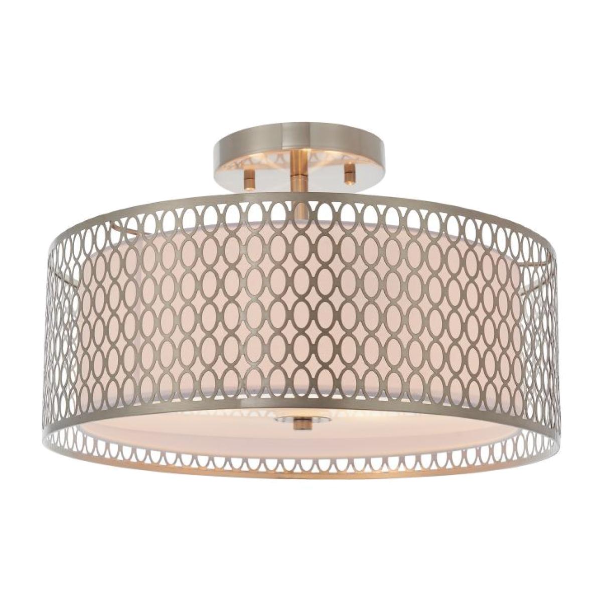 No compromise on design for low ceilings. This is a classic circular light with a trendy geometric fretwork metal outer and an inner fabric shade for lovely light diffusion.