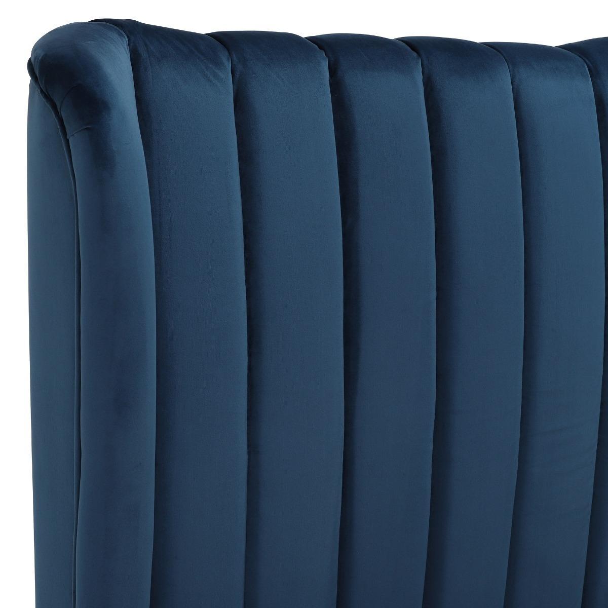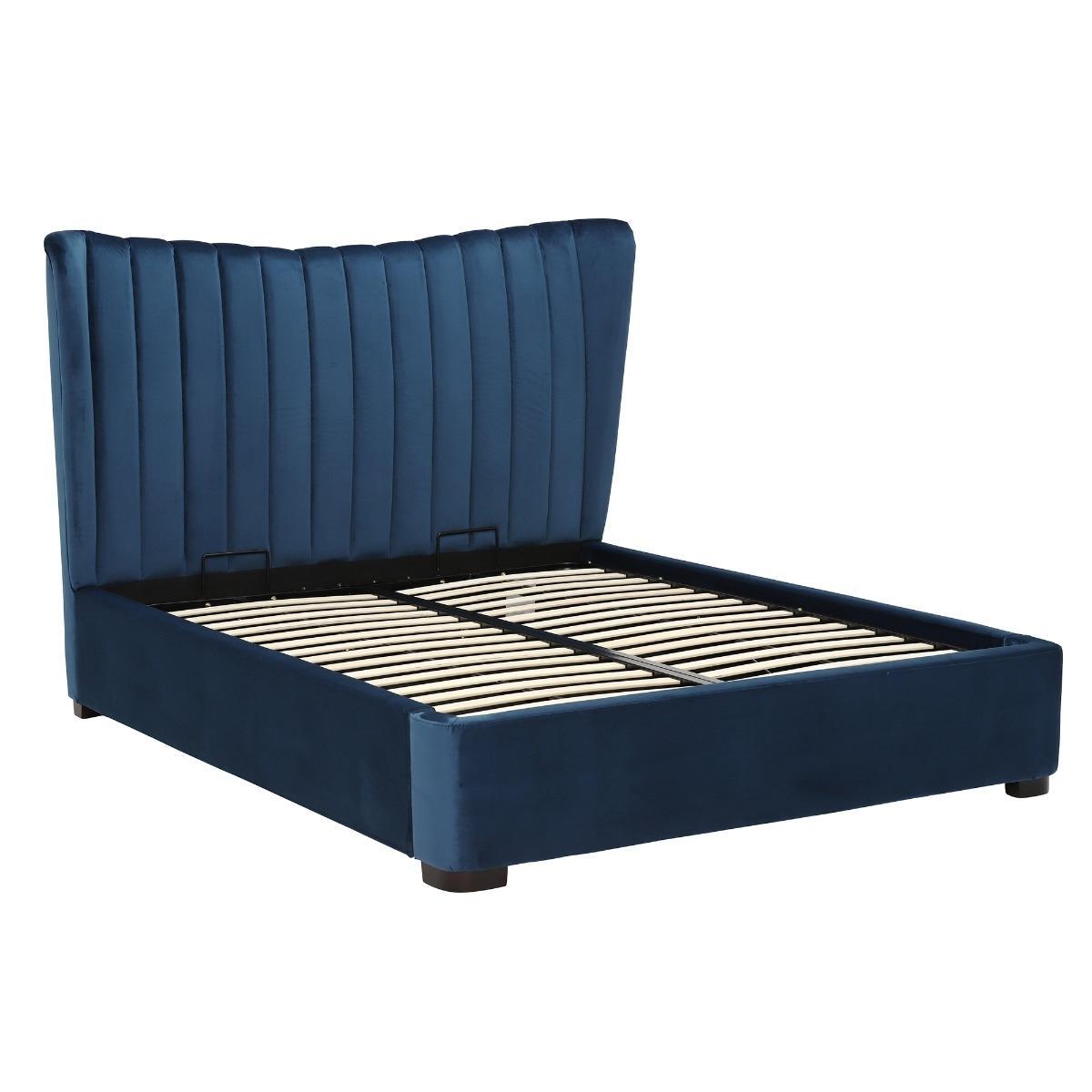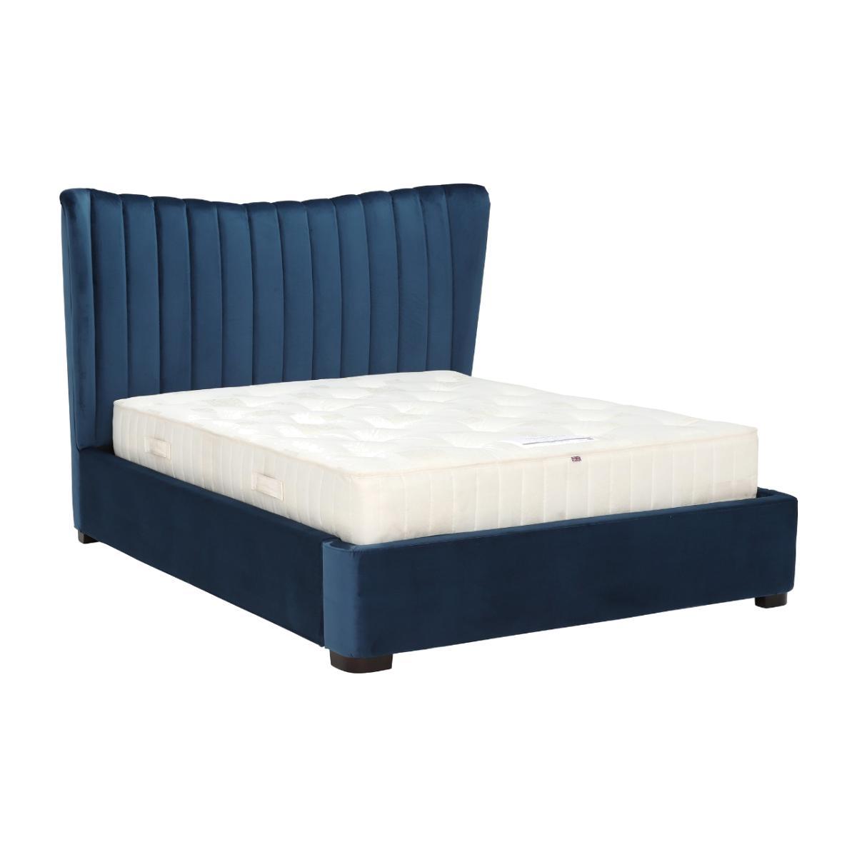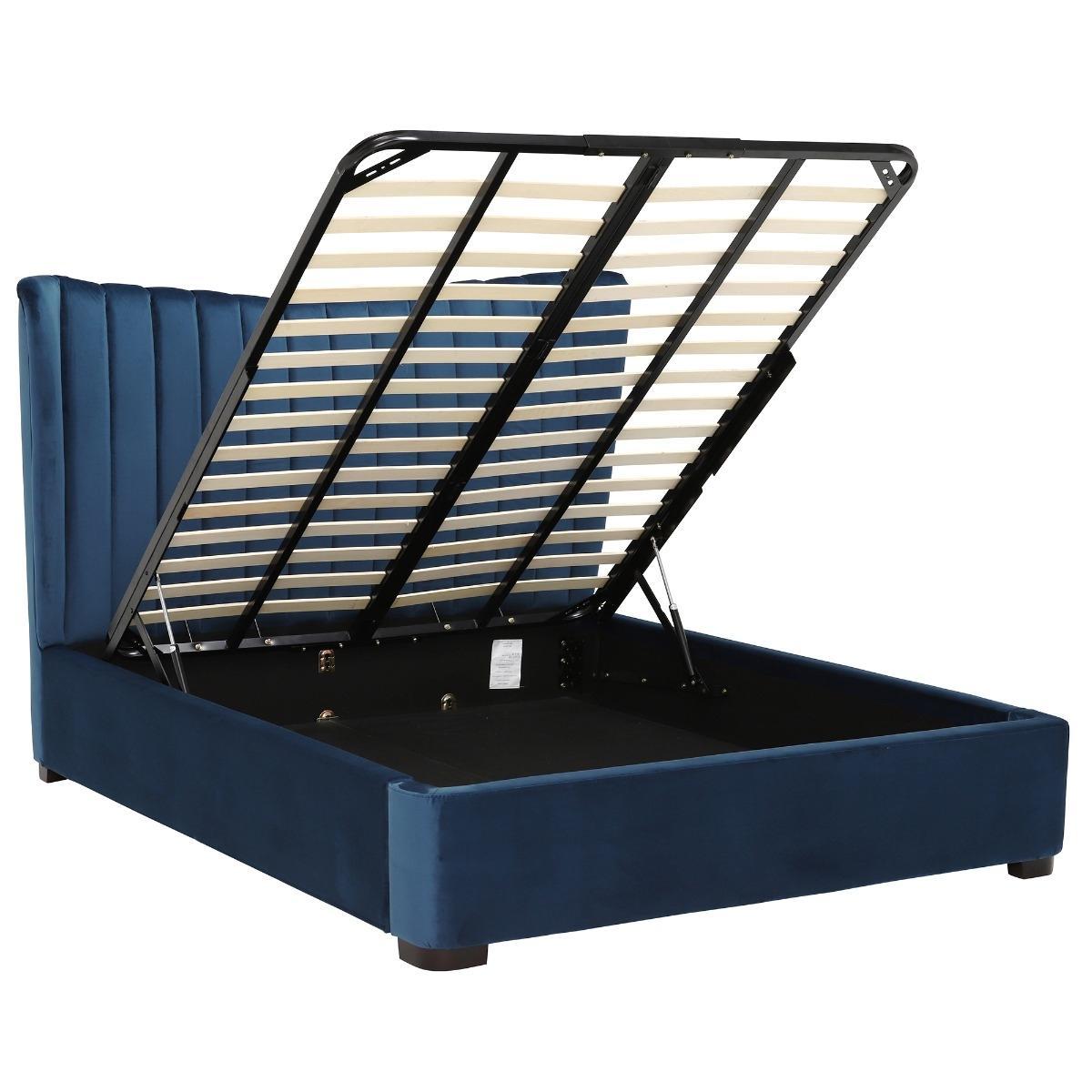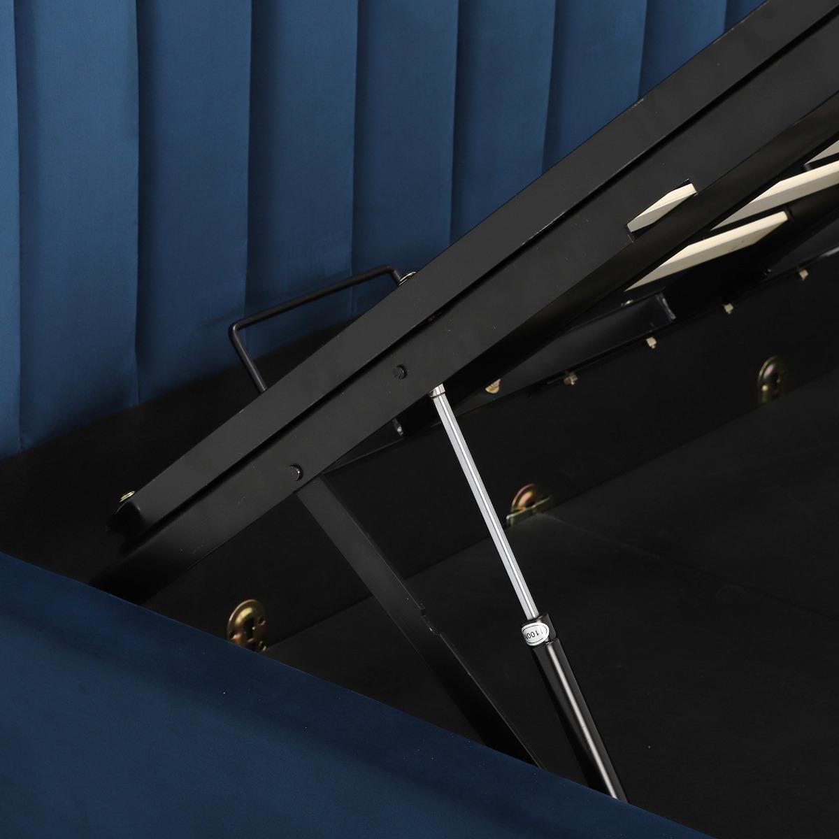 Design. Displaying a high pleated headboard and deep base all the way around, the Cordette Navy Ottoman King Bed Frame looks every bit the place for a cosy night’s sleep. The soft velvet fabric, deep navy shade and dark wedge feet compliment each other and add to the sophisticated style of your bedroom. Not only pleasing to the eye, the Navy Cordette Ottoman King Bed Frame is exceptionally practical too, which easily lifts up to display its hidden storage space that is perfect for loading away items.