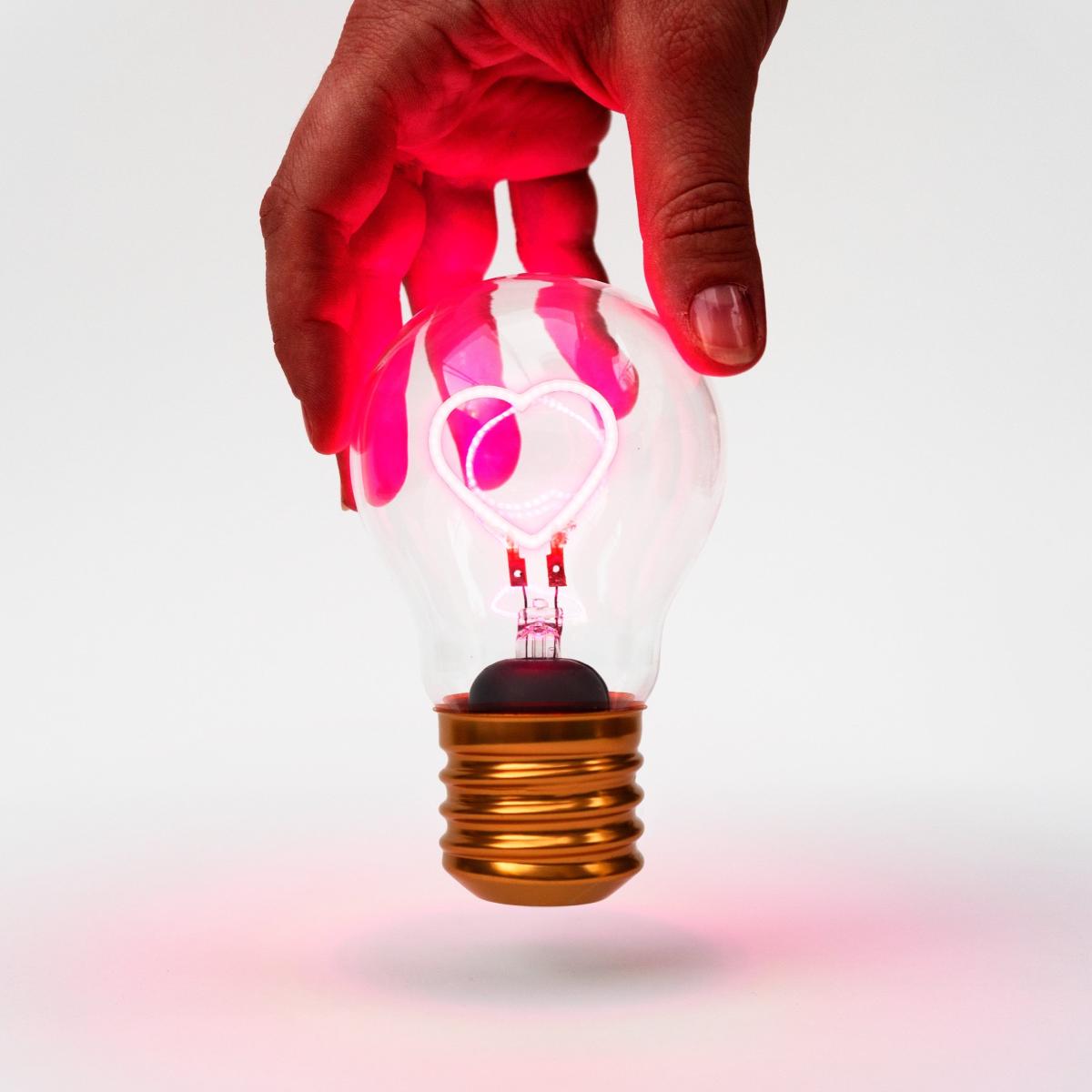 I love this light bulb because it adds a playful, cosy touch to any space. Its heart shape and pink hue make it ideal for creating a warm, inviting atmosphere in bedrooms or kid’s rooms, but it also works well in more contemporary or eclectic interiors that embrace fun elements. The cordless, rechargeable feature makes it versatile-perfect for bedside tables, shelves, or even outdoor use. For styling tips, I’d suggest pairing it with minimalistic decor to let its colour and shape stand out, or using it as a mood lighting accent alongside soft textiles and simple furniture to enhance a relaxed vibe. It’s a practical yet charming addition that brings personality and a splash of colour to your interior.