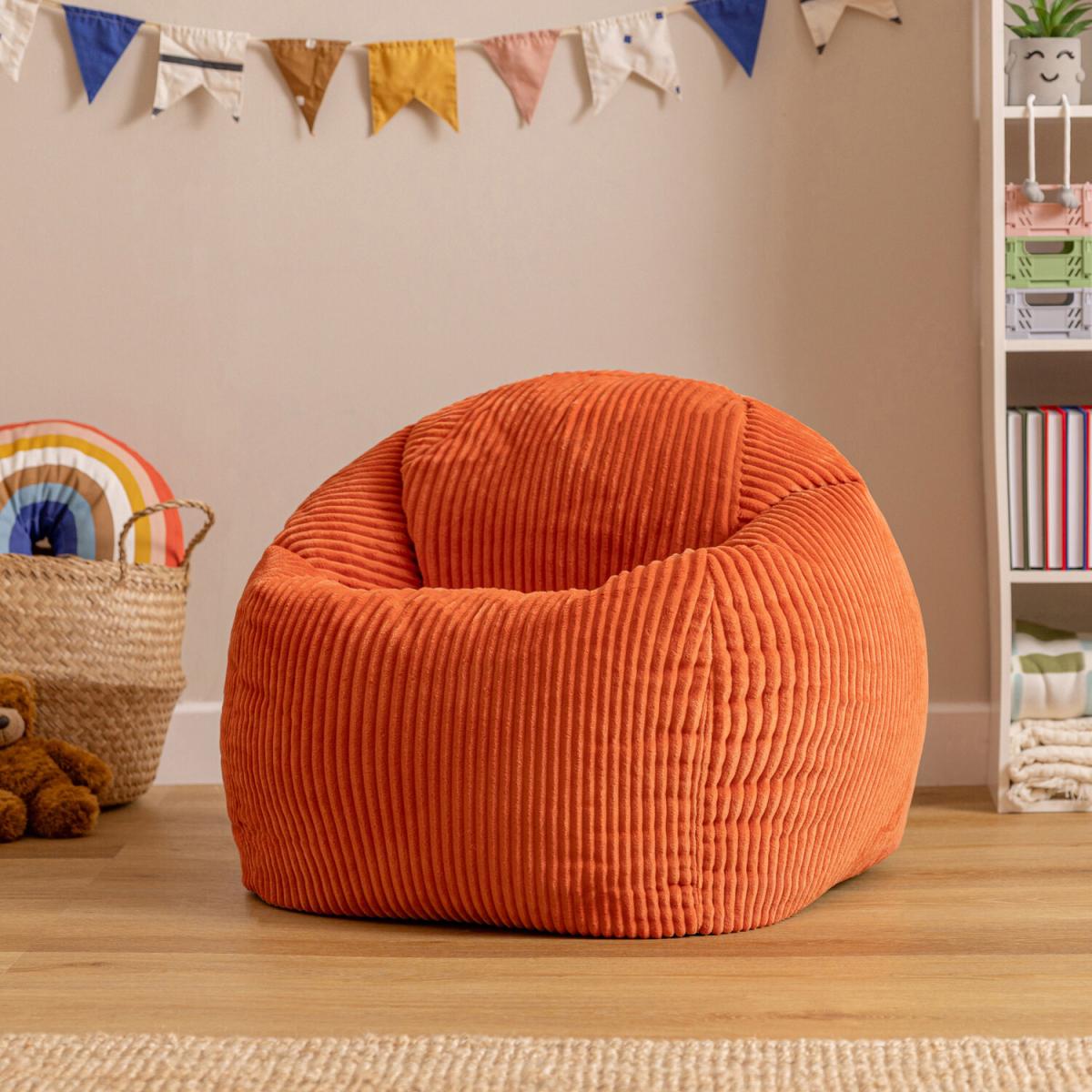 I love this beanbag for its cosy, inviting look and textured corduroy finish, which adds warmth and tactile interest to a child's room or play area. The terracotta colour keeps it versatile, working particularly well in neutral, earthy, or boho-inspired interiors. It’s a practical choice as it offers a comfy spot for kids to relax, read, or play, and its rounded shape has a playful vibe. To style it effectively, consider pairing with soft, neutral accessories or colourful cushions to keep the space lively but balanced. It's also great for creating a casual seating nook in a family lounge or even a stylish corner in a nursery.