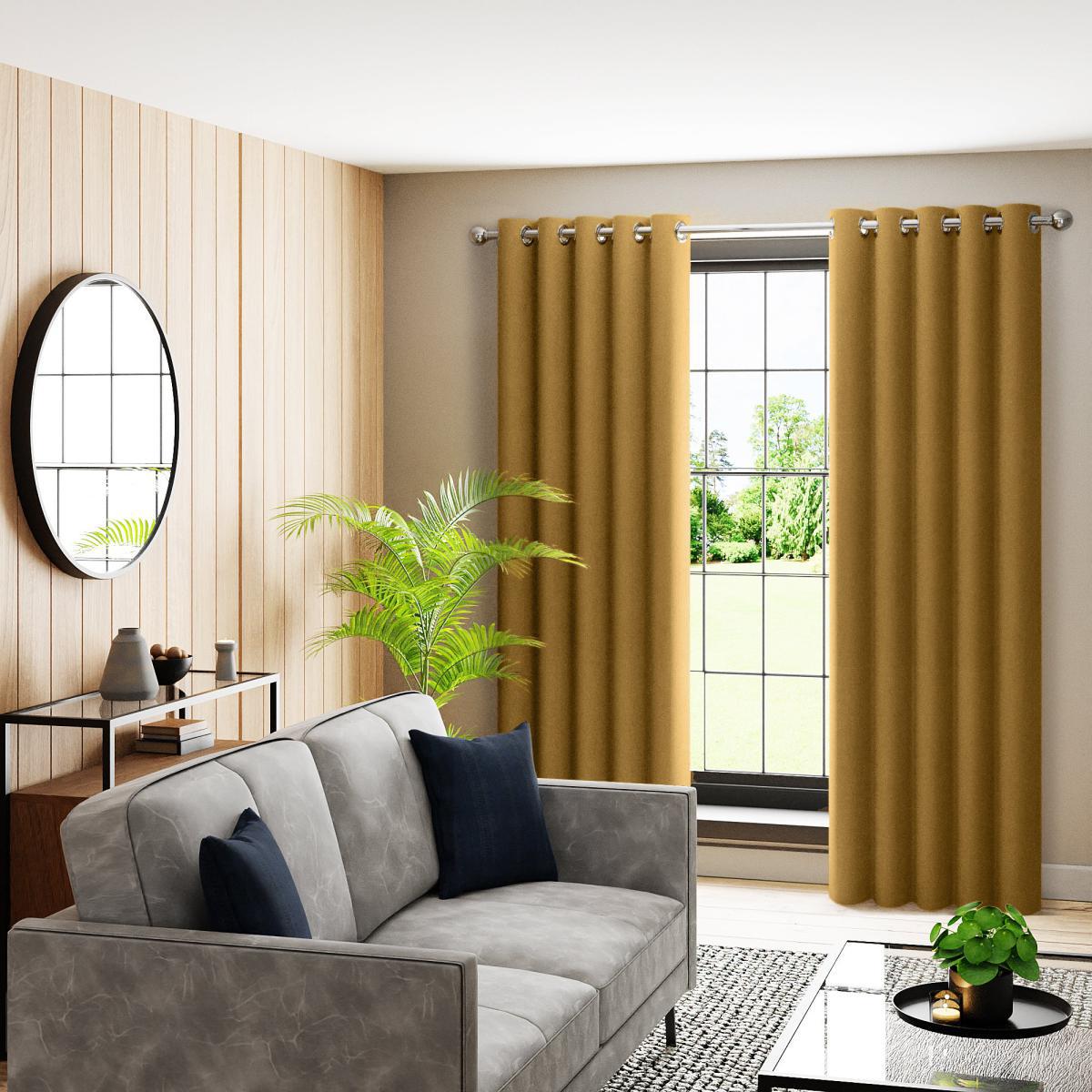 Corduroy Old Gold Blackout Eyelet Curtains Gold