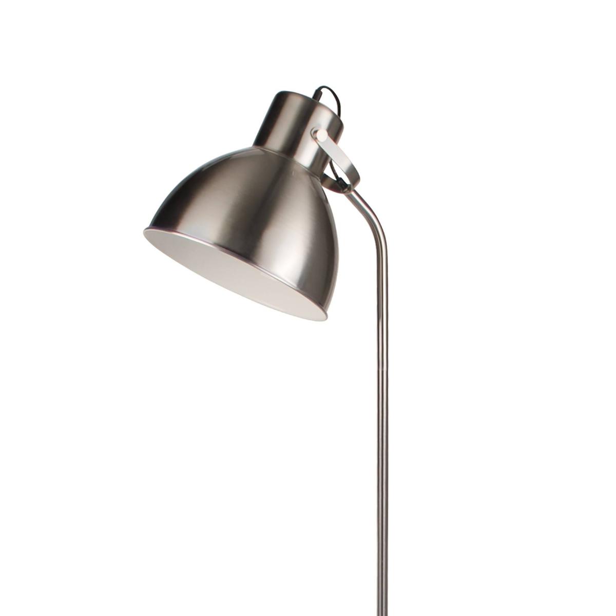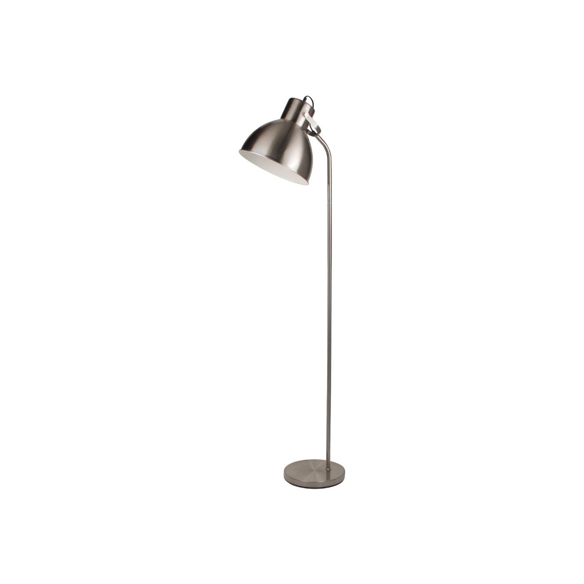 Modern floor lamp boasting a satin nickel finish. A functional piece, the Coreyfloor lamp is a robust metal lamp giving off soft directional light. Finished in satin nickel throughout, the lamp features an adjustable lamp head, easily adjusted by using the curved handle located from beneath. It is ideal for use in living rooms, bedrooms and office spaces. We recommend our E27 warm light LED bulbs for a warm soft glow, or our E27 Daylight LED bulbs for a sharp bright light.