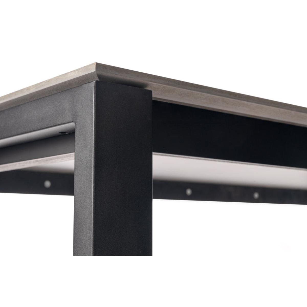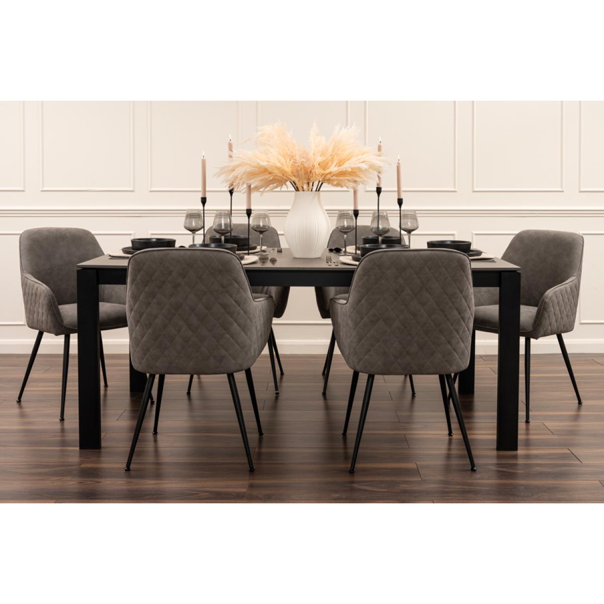 A practical and robust dining table designed for everyday family use. Featuring a concrete effect melamine tabletop with black apron and black powder coated legs. Versatile design - suitable for use with any of our dining chairs. Comfortably sits up to 6 people. Simple assembly required.