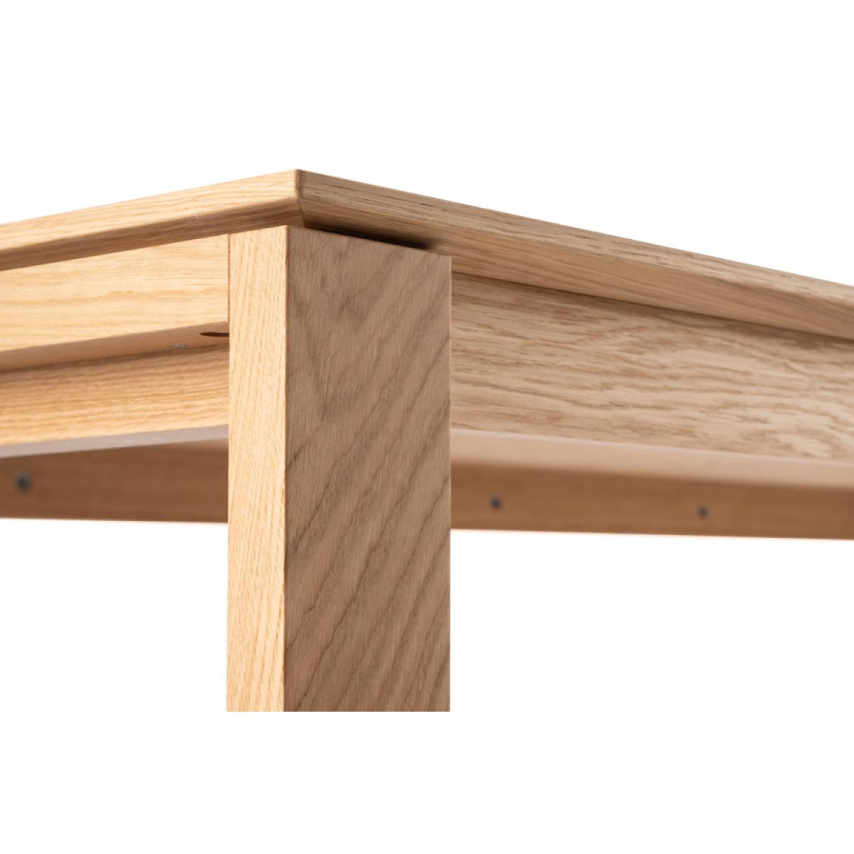 A practical and robust dining table designed for everyday family use. Featuring a sleek oak veneer tabletop and solid oak legs. Versatile design - suitable for use with any of our dining chairs. Comfortably sits up to 6 people. Simple assembly required.