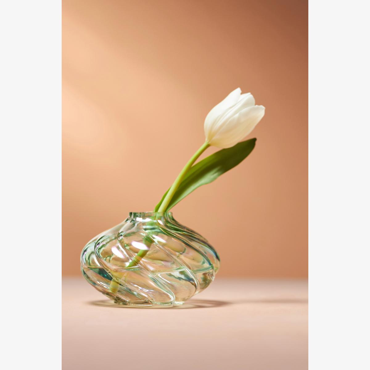 I love this little Twist vase for its unique, organic shape that adds a modern yet natural touch to any space. It works well in minimalist interiors thanks to its transparent glass, which complements neutral palettes, but it can also add visual interest in more eclectic or contemporary settings. Practical tip: use it for a single statement bloom, like a tulip, as shown, or fill it with seasonal greenery or small flower arrangements to keep your styling fresh and simple. Its size makes it versatile for shelves, side tables, or even as a centrepiece on your dining table.