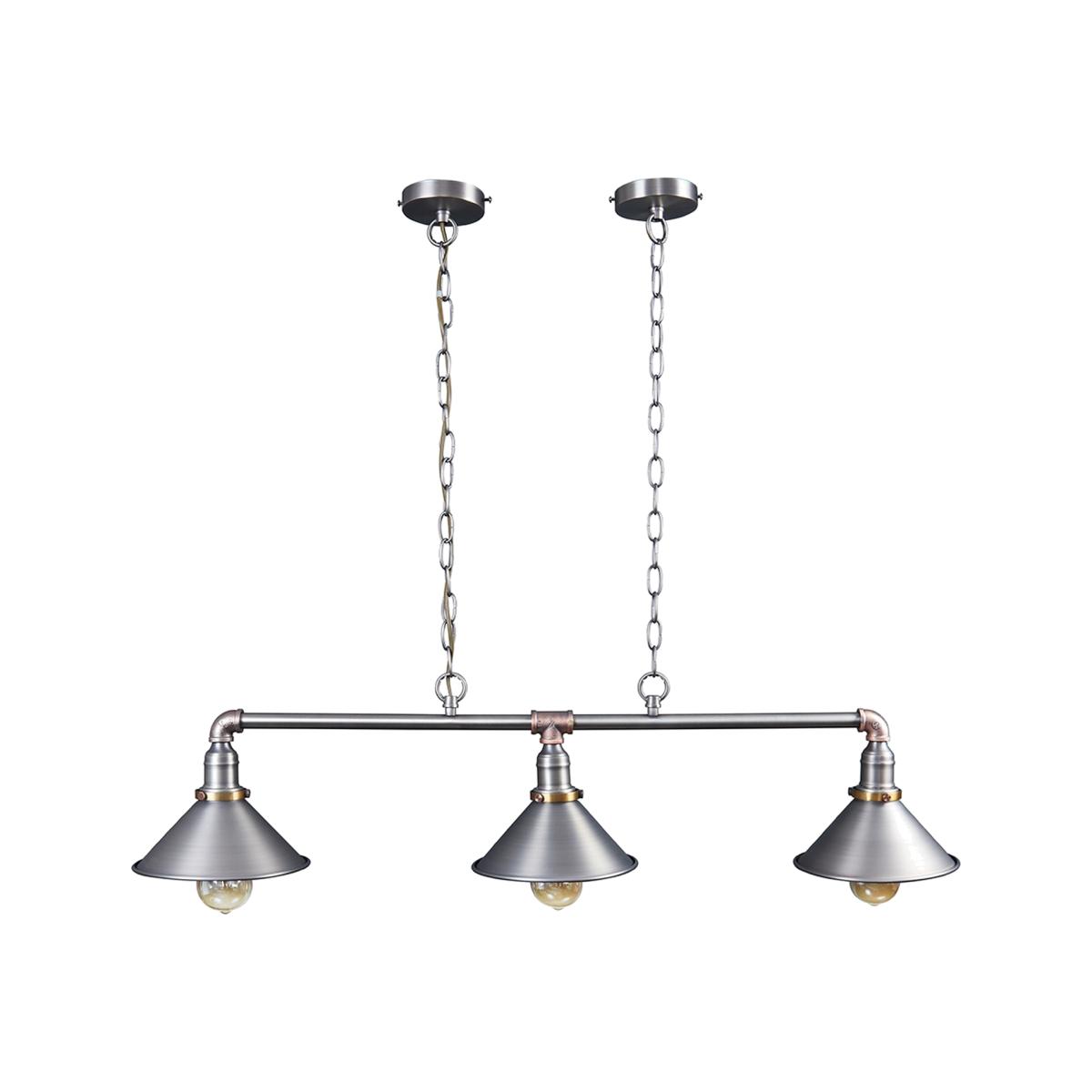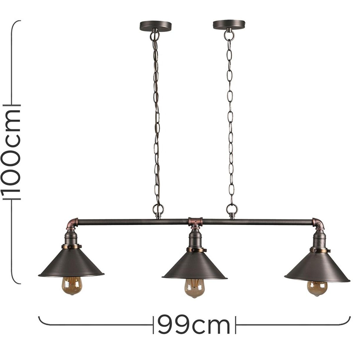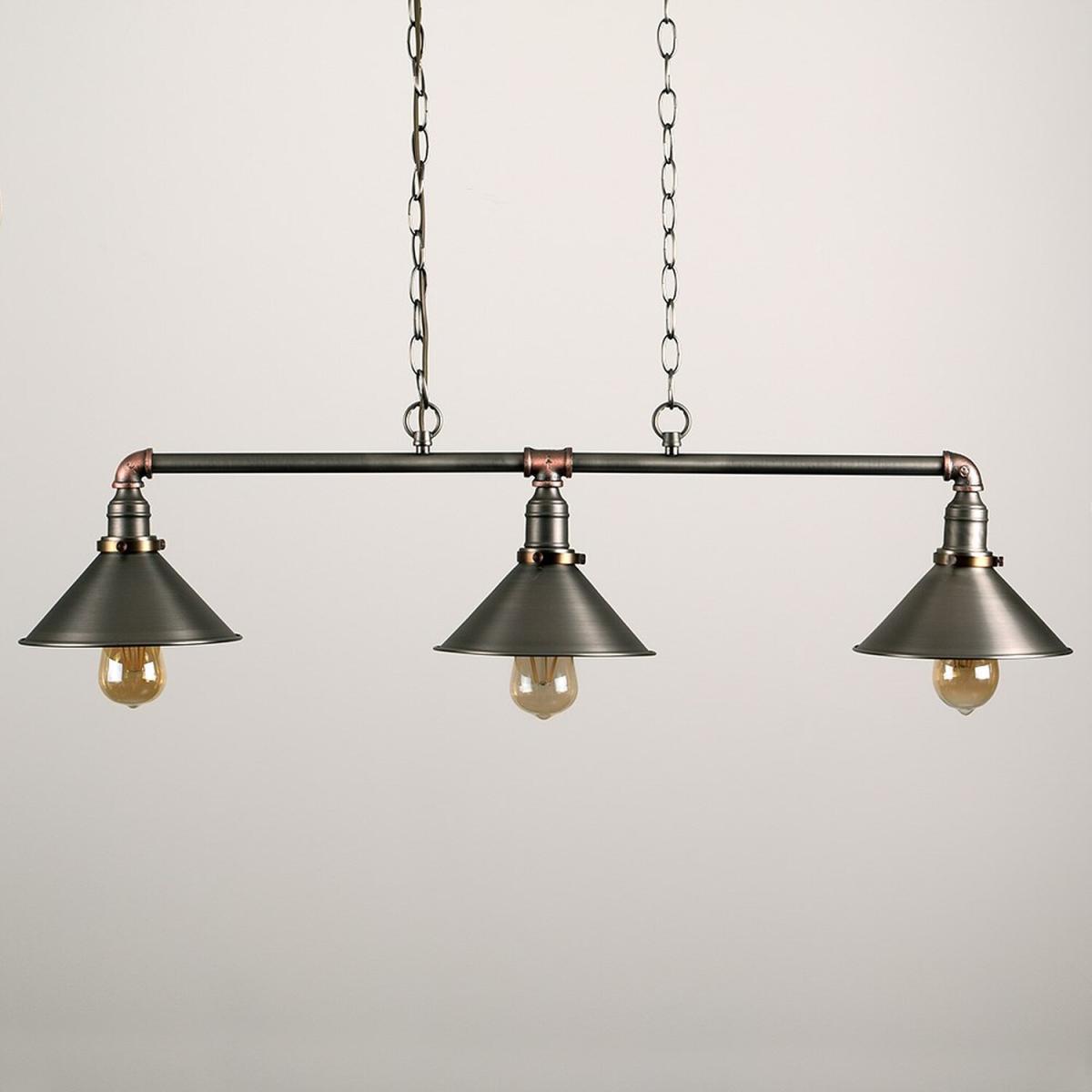 Retro style over table 3 way ceiling light fitting in a pewter, brass and copper metal finish. Perfect for kitchen islands, bars, restaurants and above a dining room table. Ideal for pairing with our vintage LED filament bulbs. Ceiling lights are usually the main source of illuminating a room but with the many styles on offer today, also become a main focal point or talking point. The right fitting can make a real style statement and complete your living space look.