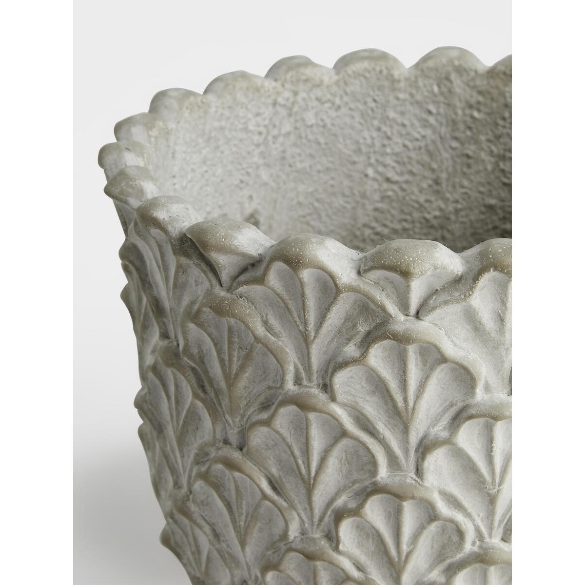 Inspired by the decor of our soon-to-be-opened House in Rome,the Corinthian planter resembles patterns and etchings found on. Corinthian columns and Ancient Greek architecture. The planter iscrafted from cement and covered in geometric scales that bring anartful streak to patios and deckings. Medium cement planter. Design inspired by Ancient Greek and Roman architecture. Crafted in China. Inspired by Soho House Rome.