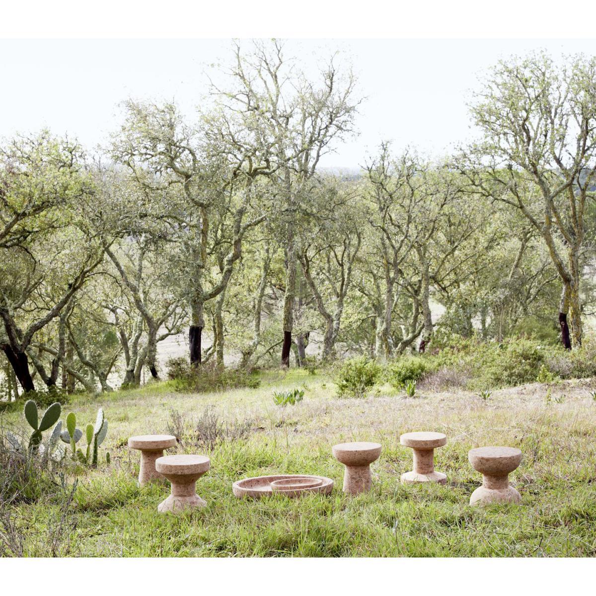 The works of the famous British designer Jasper Morrison reflect his "super normal" design philosophy: Instead of looking for unusual solutions, Morrison takes tried and tested designs and gives them a new identity by reinterpreting, developing and refining them. To serve the object, he follows in the footsteps of the Viennese of the early 20th century, such as Adolf Loos, the Italian rationalists, and his British elder Robin Day, who, like him, always sought to perfect the best rather than create new products. In 2004, for his Cork Family stool collection, Jasper Morrison chose to use turned, untreated cork: a natural, ecological and durable material. No glue is used for shaping it. Rarely used in furniture making, cork is now going through a comeback in the world of design and architecture because it is recyclable and can be harvested without harming the tree from which it grows. Incredibly tactile, cork is also soundproof, fireproof and water resistant. The Cork Family stools benefit from the properties of cork: they are relatively light, extremely durable and soft to the touch. These stools evoke bottle corks and are sculptural, minimalist and expressive. The massive silhouettes emphasize the natural beauty of the cork. The different forms follow each other like an alphabet, forming a kind of silent speech.