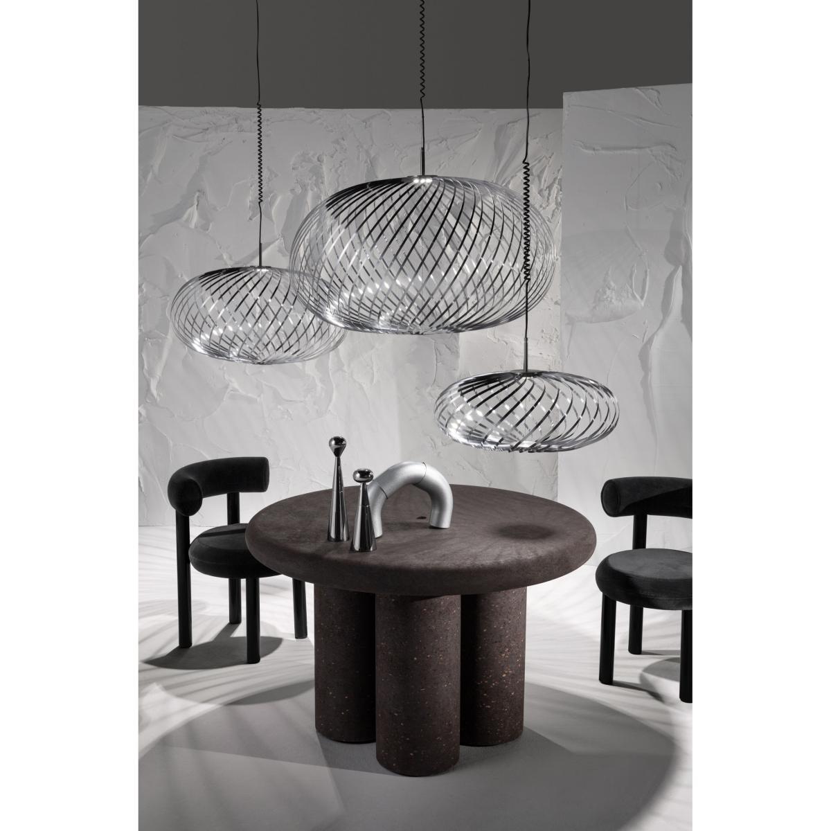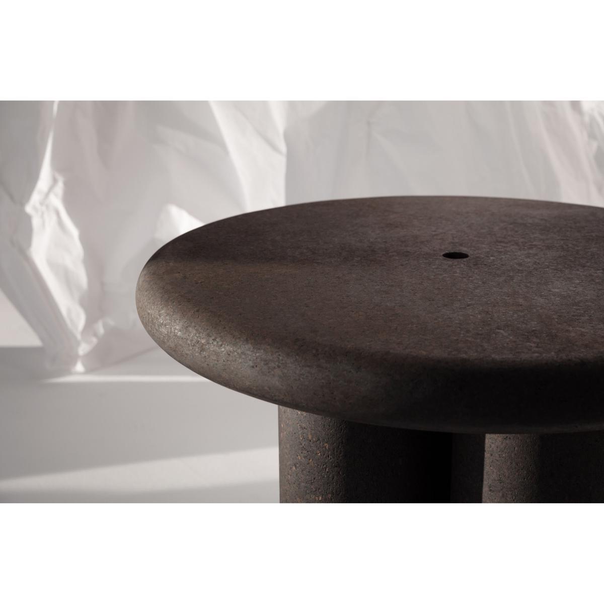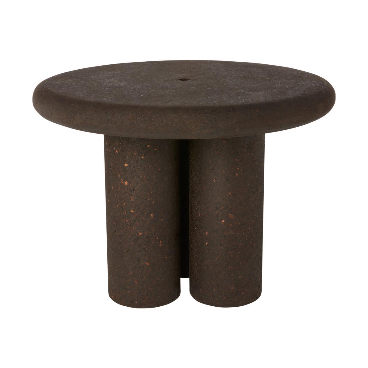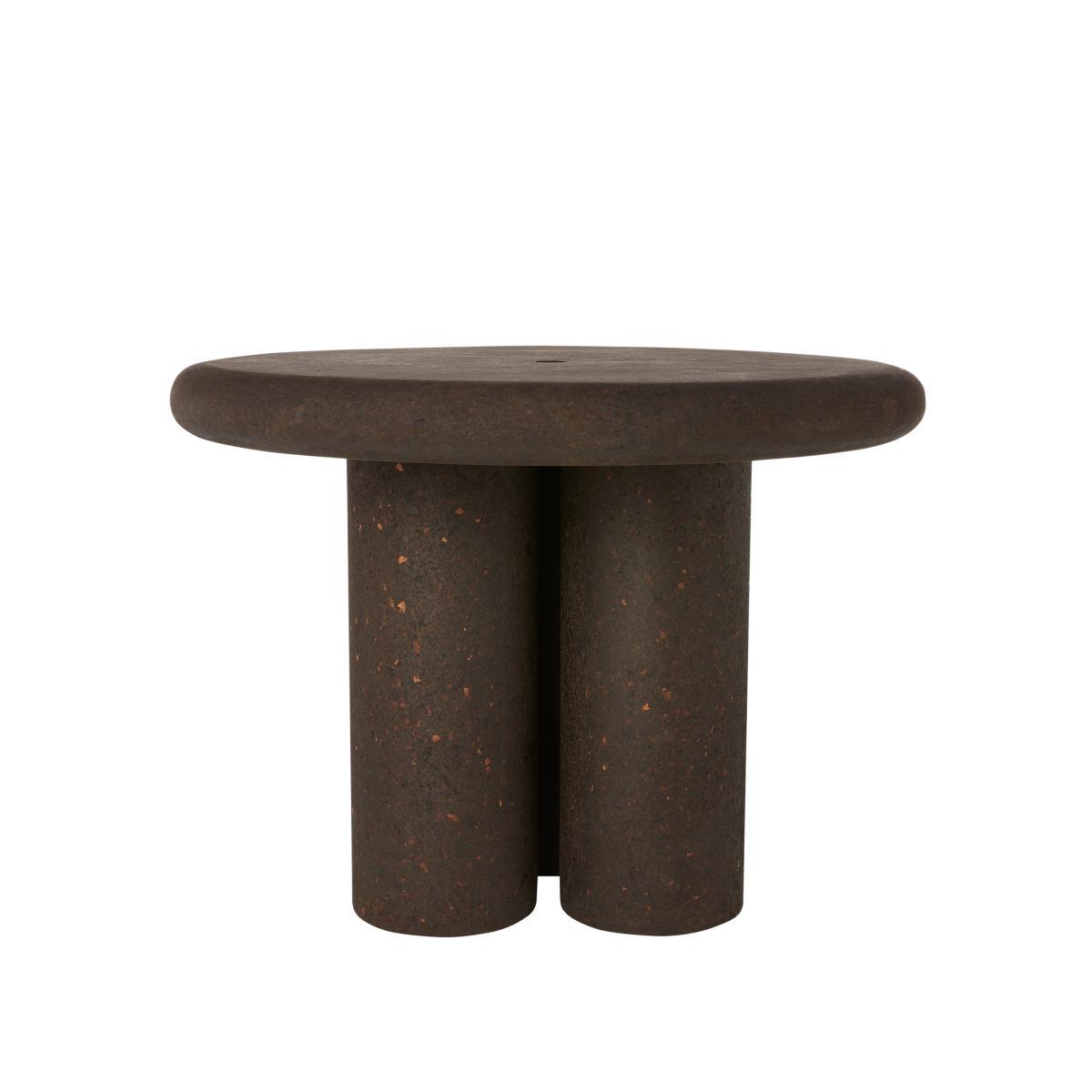 British designer Tom Dixon is launching a series of cork furniture that’s been burnt to give it a rich dark brown colour reminiscent of rosewood. The solid, round silhouettes really highlight the material. Tom Dixon explains: “When I was little, we had cork floors and they had this incredible warmth and tactility. Cork is also sound-absorbing, fire-retardant, water-resistant, and lighter than water, which is why it floats, so it’s easy to carry. In terms of dream materials, you really can't beat it! We’ve taken full advantage of the elasticity, sound absorption and waterproof nature of cork, which, combined with its natural beauty, makes for a unique set of highly sculptural furniture with expressive, minimalist attributes and superior functionality. '' Ecological, the Cork collection is made from recycled cork from pre-consumer waste (industrial waste). The collected cork offcuts are reduced to granules which are agglomerated and compressed into composite blocks. The material is mixed with a small amount of polyurethane resin to bind it at a ratio of 93% cork to 7% resin. The cork is then burned: it turns brown and expands. This makes the cork less sensitive to dirt, while avoiding an overly Scandinavian aesthetic. The cork thus obtained can then be recycled continuously, even with the resin. Combined with used tyres, it can be used to make flooring. The soft, rounded edges of the furniture are created by CNC milling machines, and the offcuts are reused to form new composite blocks. There is hardly any waste in the process - even the dust from production is used to feed the ovens in the factories. Rarely used in furniture making, cork is a natural, waterproof, flame-retardant material that has always been used in the production of footwear, floor and wall coverings. Today, it’s seeing a resurgence in the world of design and architecture due to the fact it’s also recyclable and, according to Dixon, carbon-negative because it can be harvested without harming the tree it grows on. "You don’t cut down a tree like you would for a wooden table or chair - all you do is take off its bark, which then regrows ", he explains. "You plant trees for the long term and harvest every nine years. All the while, the material effectively captures carbon as it grows. The tree continues to make more bark, that bark captures more carbon, and you plant more trees to make more cork. " The cork used to make the Cork collection comes from Portugal. To reduce transport as much as possible, the cork furniture is also made in Portugal. Tom Dixon on the round shapes of the Cork table: "I was very 'angular' before I became a dad! But once your child bangs into the corner of a sharp-edged table, you suddenly start to round everything off! It kind of happened without me realising it. But on a practical level, corners and sharp angles will deteriorate very quickly in a soft material like cork, so this was also done to make them less destructible. ".