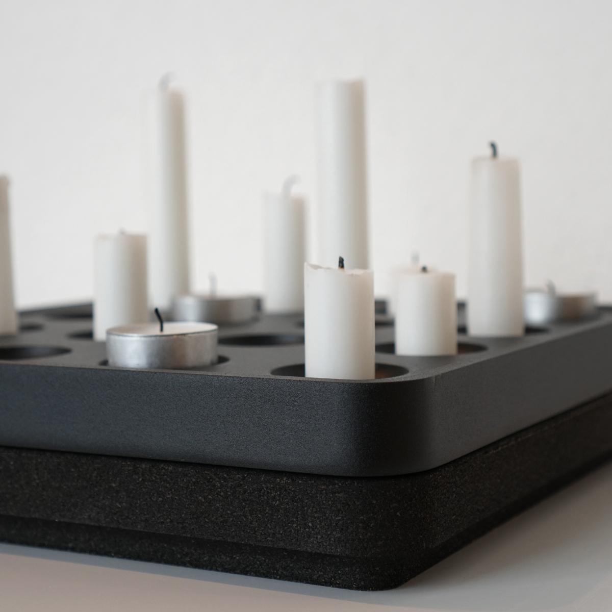 Cork bowl for Stumpastaken large from Born in Sweden is made of recycled cork in a rectangular design with softly rounded corners. ​ The bowl is specifically designed to go with Stumpastaken from the same brand and functions as a stylish and stable base with space for both candlesticks and unused candles. ​.