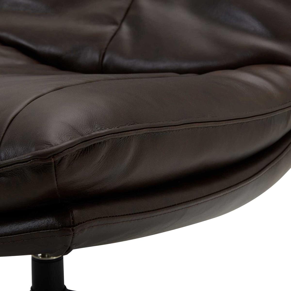 Immerse yourself in the epitome of sophistication and comfort with our Brown Leather Swivel Chair. Its fully assembled design and sleek brown colour make it an instant classic in any living room. Crafted from durable plywood, the solid frame ensures longevity. The fixed foam seat cushion with Dacron provides a consistent and supportive seating experience that maintains its shape over time. With a versatile 360-degree swivel feature, this chair adds a modern touch to your space. Carefully designed and easy to maintain, it seamlessly combines style and functionality for your ultimate relaxation