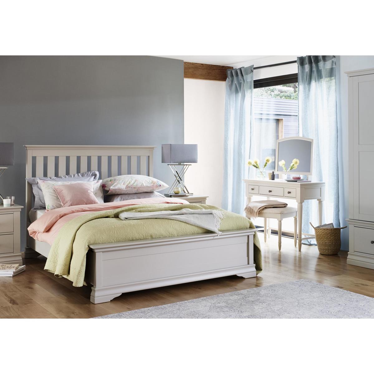 Headboard comes as one single piece. The Corndell Ambriella imperial bed frame brings a contemporary feel to a classic design. Beautifully hand painted in a non-toxic paint, this traditional-style bed has a slatted headboard with an attractive corniced top and bracket feet. Choose between two subtle shades, white or cotton, to coordinate with your bedroom look. Available in all standard mattress sizes, the beautiful Corndell Ambriella imperial bed frame is part of the extensive Corndell Ambriella bedroom furniture collection. With a wide selection of chests of drawers, wardrobes, bed frames and bedside cabinets, this range makes it easy to give your bedroom a stylish and elegant makeover. Did you know? Oak is natural with characterful knots and markings, every piece of furniture is unique. Mattress available separately