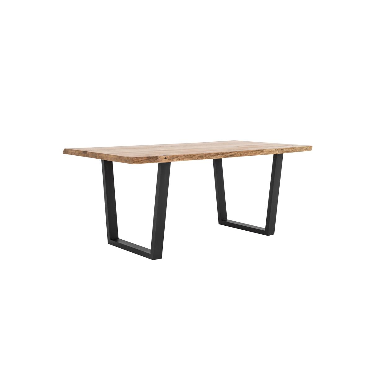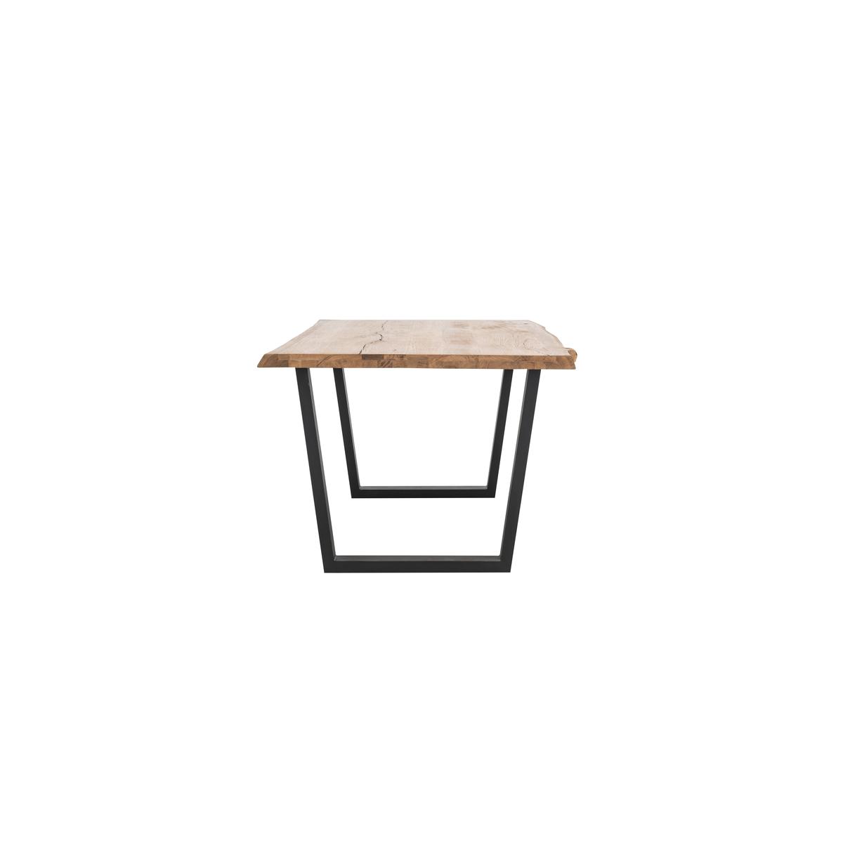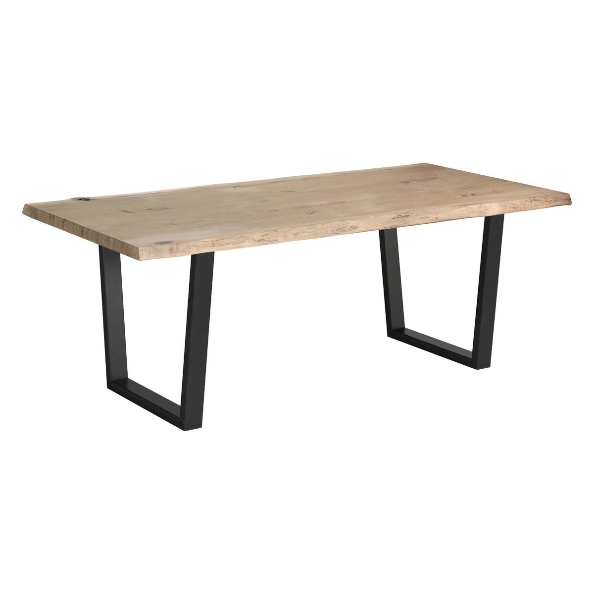 Showcasing the popular industrial trend, the Jagger dining table with metal legs is contemporary and stylish. Available in three sizes, seating 6, 8 or 10, this solid wood, hand-finished table has a stunning live edge and your choice of white oiled or waxed oak veneer top. The U-shaped base is made of powder-coated steel painted black. The Jagger dining table with metal legs is part of the Jagger range and is also available with solid oak block-style legs. Call 0800 804 8879 to learn more. Please note: Each one-of-a-kind Jagger piece features a sustainably harvested solid live edge. A live edge shows the original lines of the wood’s trunk in a very raw state with characterful colour variations, knots and silvery markings known as medullary rays. As these aesthetic features are not always practical for dining, we fill them to create a smooth waxed surface that’s also easier to care for.