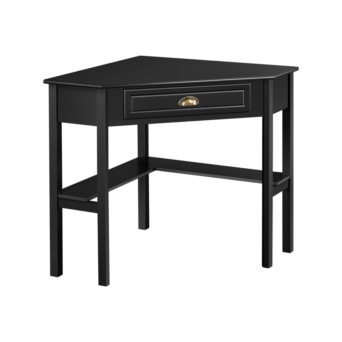 Corner Computer Desk with Storage Drawer and Shelves - Black