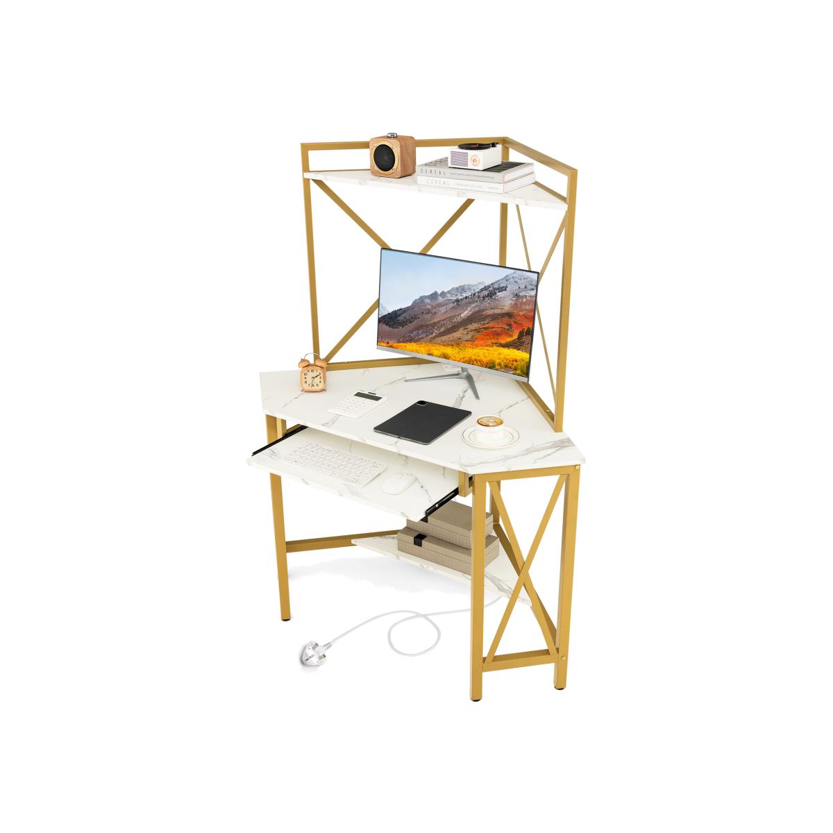 I’m a fan of this corner desk for its clean white surface and slim gold frame, which slot neatly into unused corners and instantly brighten a workspace. It works well in contemporary, Scandinavian or even minimal-Glam interiors, thanks to its simple construction and mix of metal and laminate. Styling tip: keep the desktop clutter-free by using a slim desk organiser and a single statement lamp, then add a small potted plant or sculptural bookend on the upper shelf. Choose a desk chair in a complementary tone (grey, blush or black) to tie the look together without overcrowding the corner.