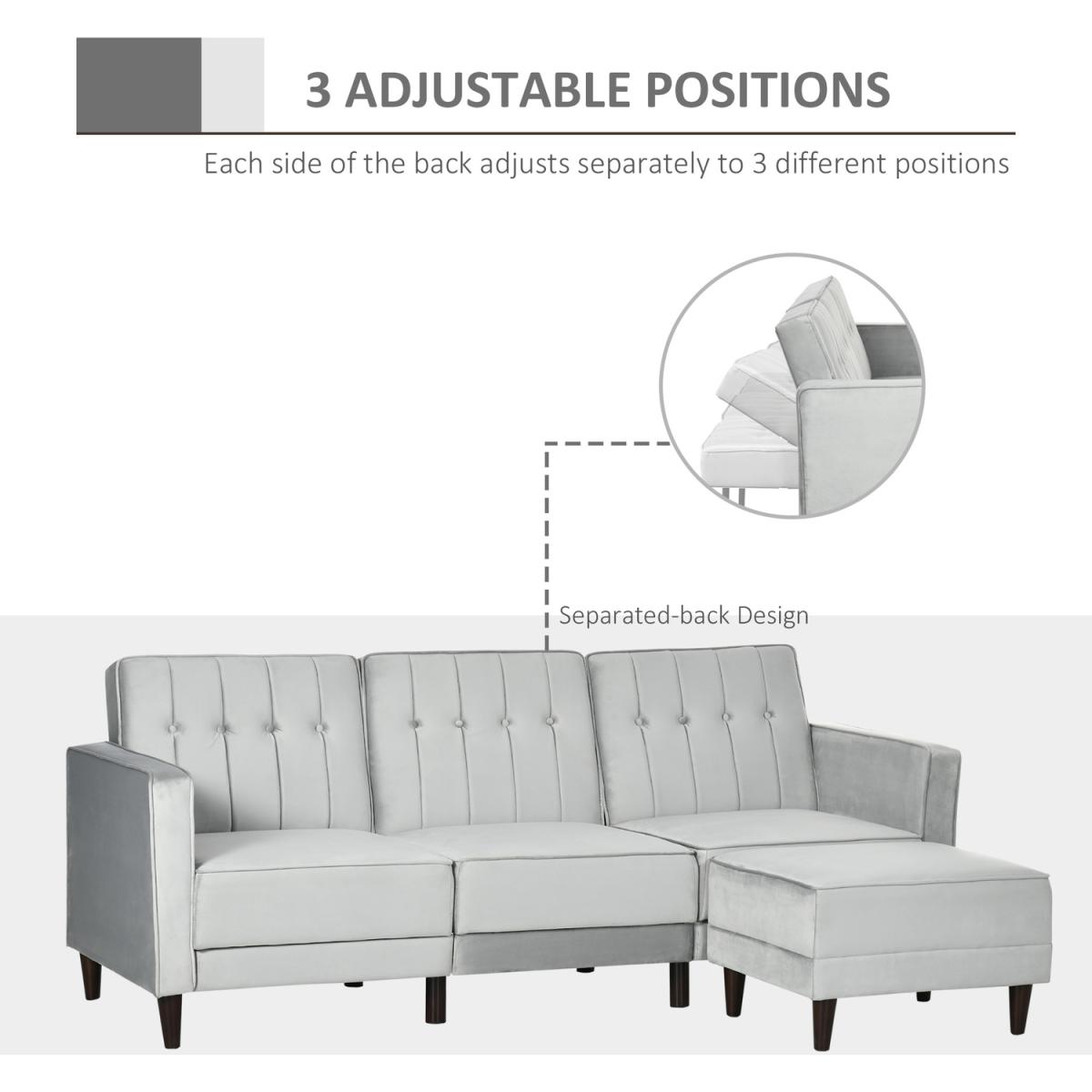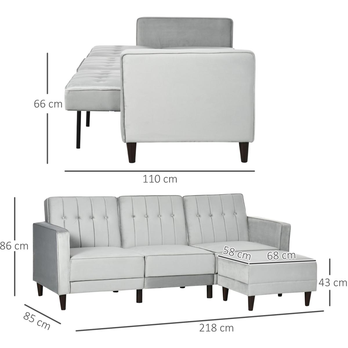Go grey in super luxurious style with this sofa bed set from HOMCOM. The velvet-feel upholstery is soft and beautiful, with the light colour making it easy to pair with brighter colours. Three-seater design gives plenty of room to sit and sleep, with the matching ottoman giving room to extend your leg and feet resting space. Each back reclines to three different positions - everyone can lean back to a position they like. Finished with sponge filling and thick cushion seats for lots of comfort.
