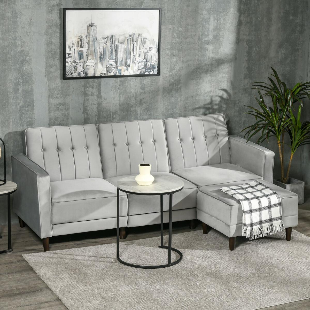 Corner Sofa Bed with Footstool Reversible Sectional Sofa Set - Light Grey