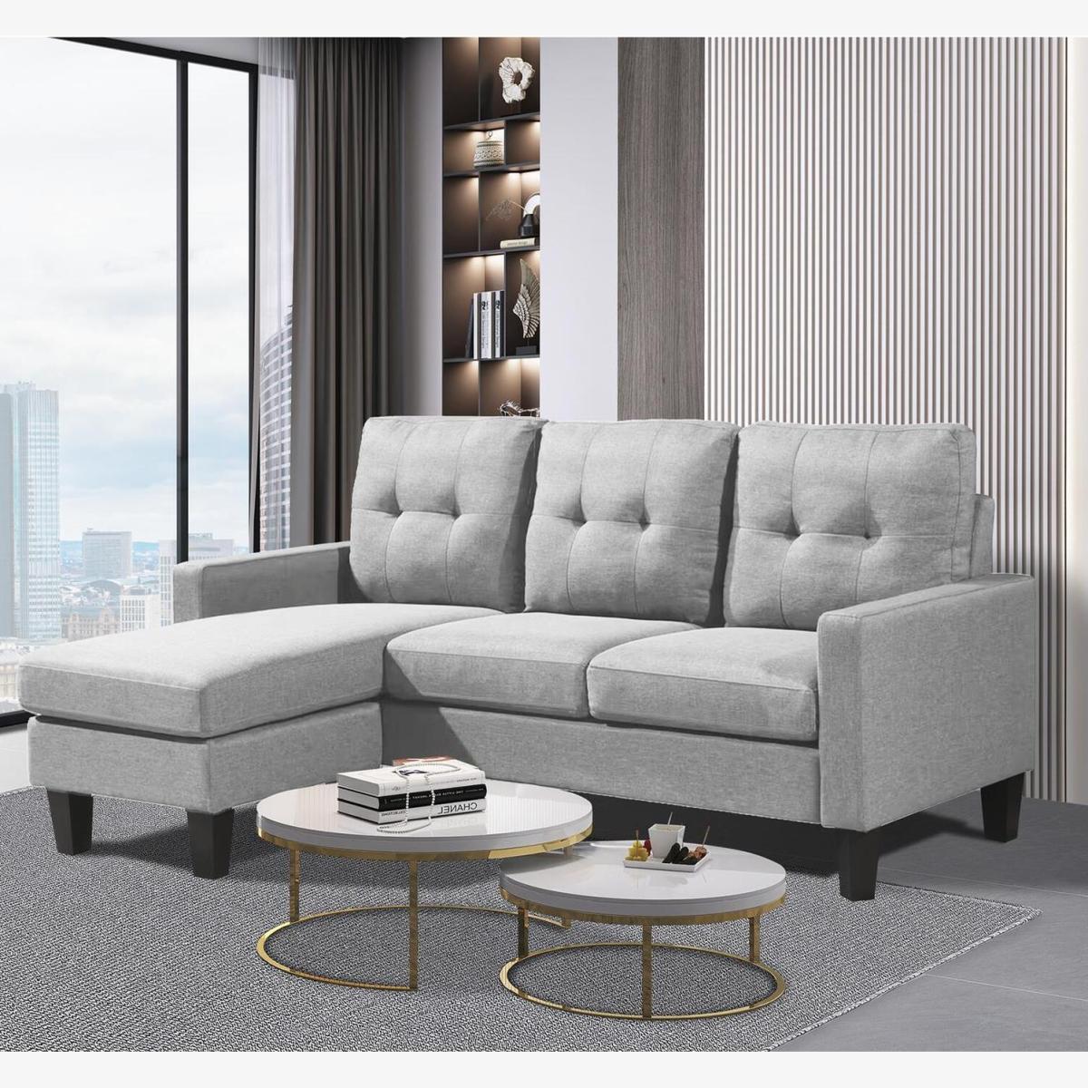 The Multipurpose Modular Fabric Sofa Set includes a 3-seat sofa and a reversible chaise lounge. This sofa can be placed on the right or left side with the armchair while acting as a separate sofa and ottoman designed to decorate Your Home by mixing classic and rustic elements. The material is fabric, and available in Blue, Black and Light Grey colour. Sectional sofa set saves space. Perfect for small apartments this reversible, small-space sectional sofa comes with a movable ottoman. You can place the square ottoman on the left or right of the sectional sofa to fit your living room wall. Dimensions: Mount as recliner: 184 x 128 x 87 cm, Mount as a sofa: 184 x 74 x 87 cm, Ottoman: 55 x 55 x 42 cm. This elegant and practical sofa with cushion can be converted into an 184 x 128 cm recliner with a modern and classic style. Easy-to-follow instructions ensure a perfect build and the sofa sets up quickly and easily. Modular Sofa Set provides space solutions. Convenient for both entertaining guests and spending days of leisurely relaxation. You can place this sofa on the right or left side of the armchair. Includes a movable ottoman, a 3-seat sofa, and a reversible chaise lounge. Excellent craftsmanship with a stylish and versatile finish. Ideal for rooms with limited area.