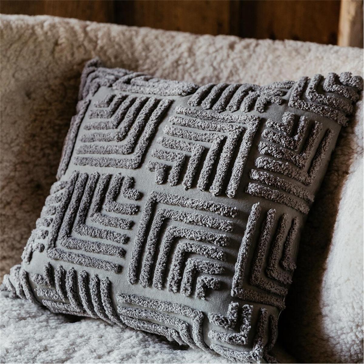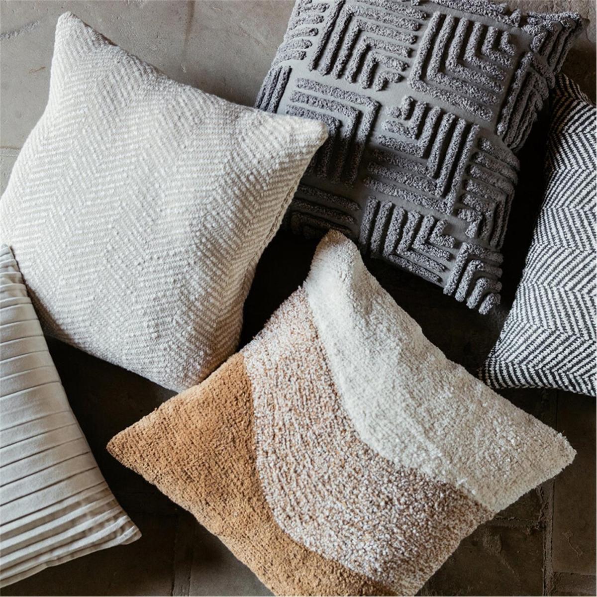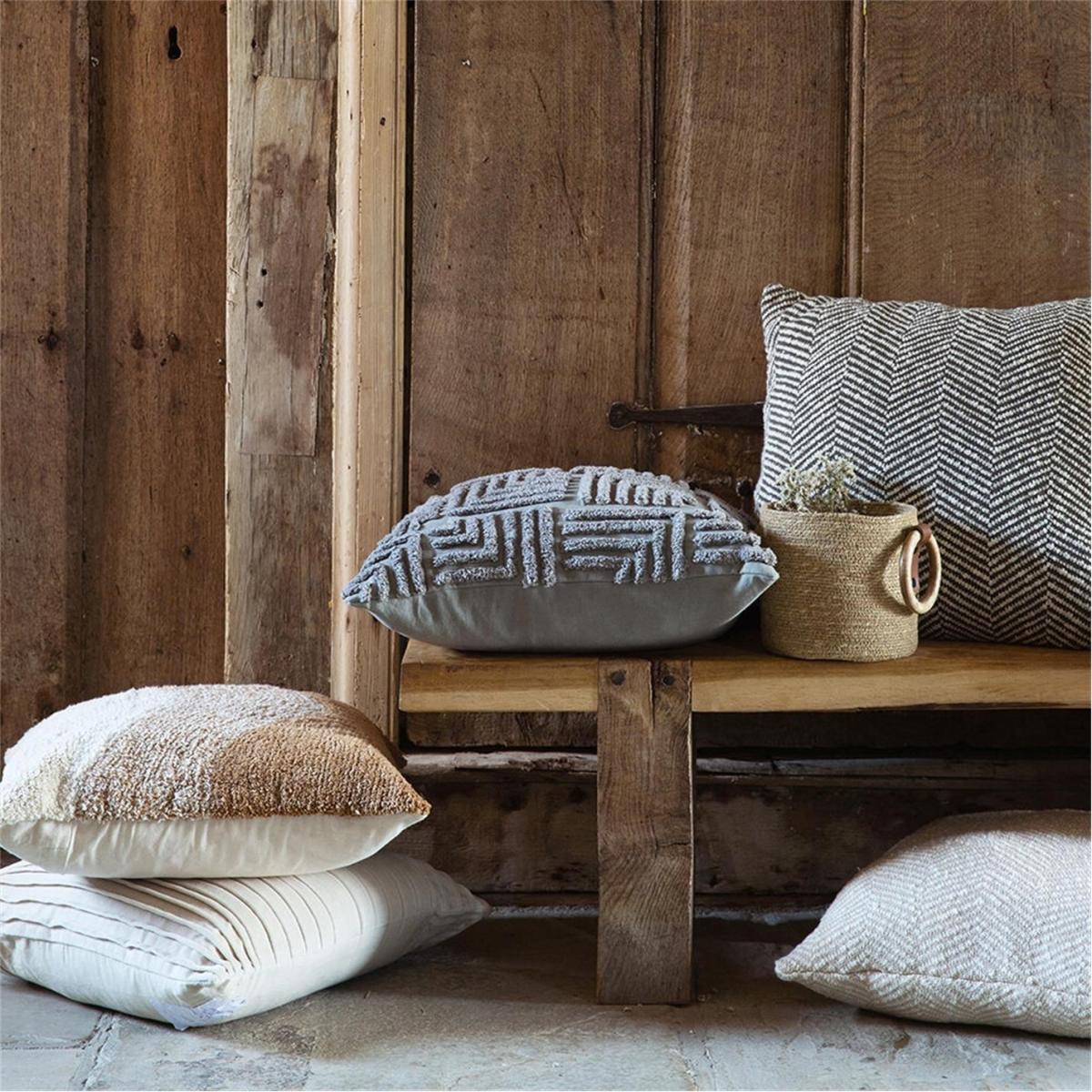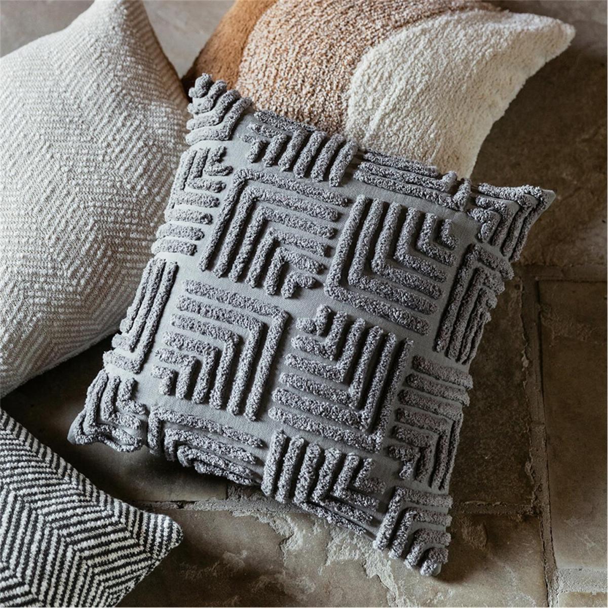 I love this textured cushion for adding a bit of visual interest to neutral or minimalist interiors. Its geometric design brings a modern touch, while the textured fabric offers a cosy feel-perfect for contemporary living rooms or bedrooms. It works well mixed with other cushions in solid colours or subtle patterns to create a layered, inviting look. Practical styling tips include pairing it with smooth-surfaced cushions for contrast or placing it in a plush armchair to add depth and tactile appeal. This cushion cover is a versatile piece that can effortlessly elevate a space without overwhelming it.