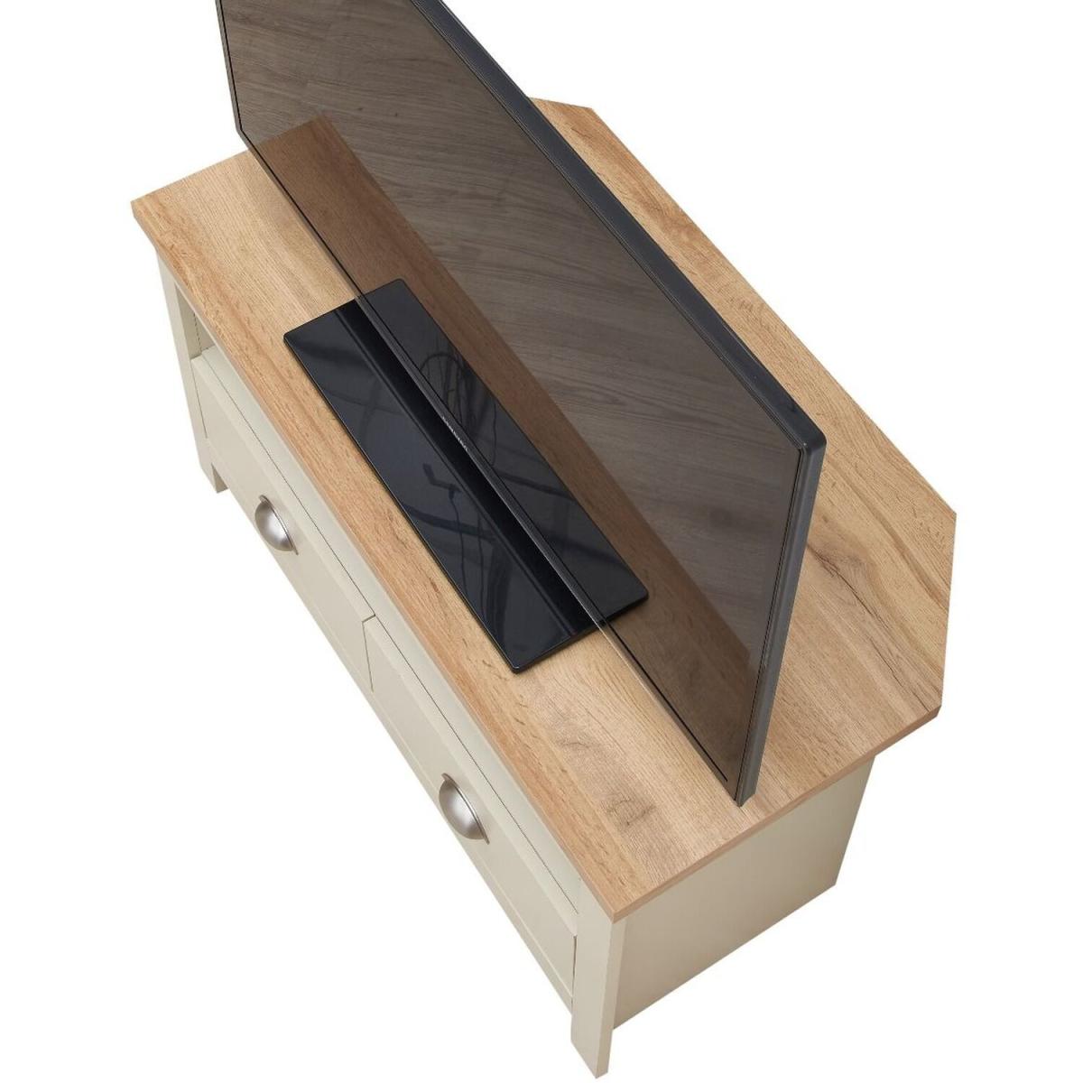 I love this cream corner TV unit because of its clean, versatile look that easily complements both modern and classic interiors. Its simple design and neutral colour make it a practical foundation for various décor styles, from Scandi minimalism to cosy traditional schemes. The two drawers offer handy storage, helping keep clutter out of sight while maintaining a sleek appearance. Styling tips include adding a few decorative objects on top - such as small vases, books, or a statement lamp - to personalise the space without overwhelming it. Because of its understated charm, it works well in open-plan living areas or smaller spaces where simplicity and organisation are key.