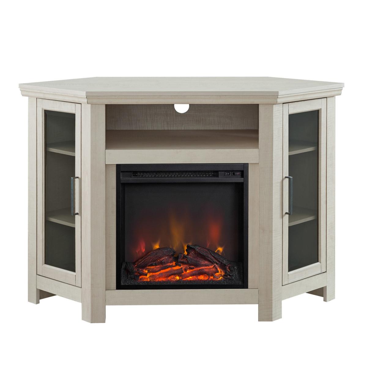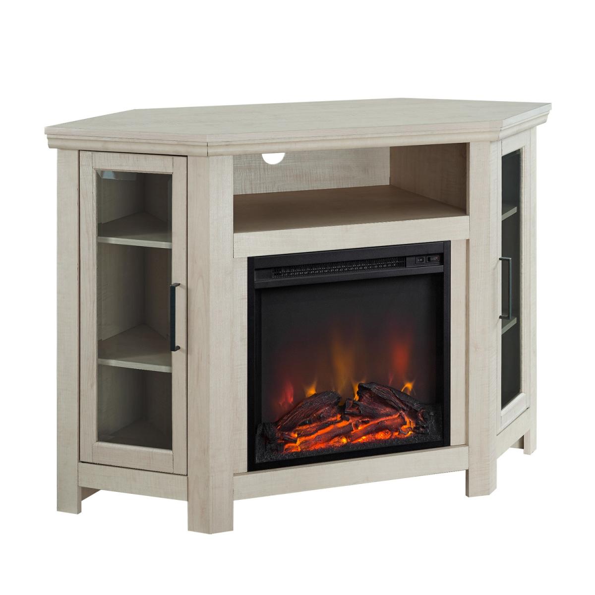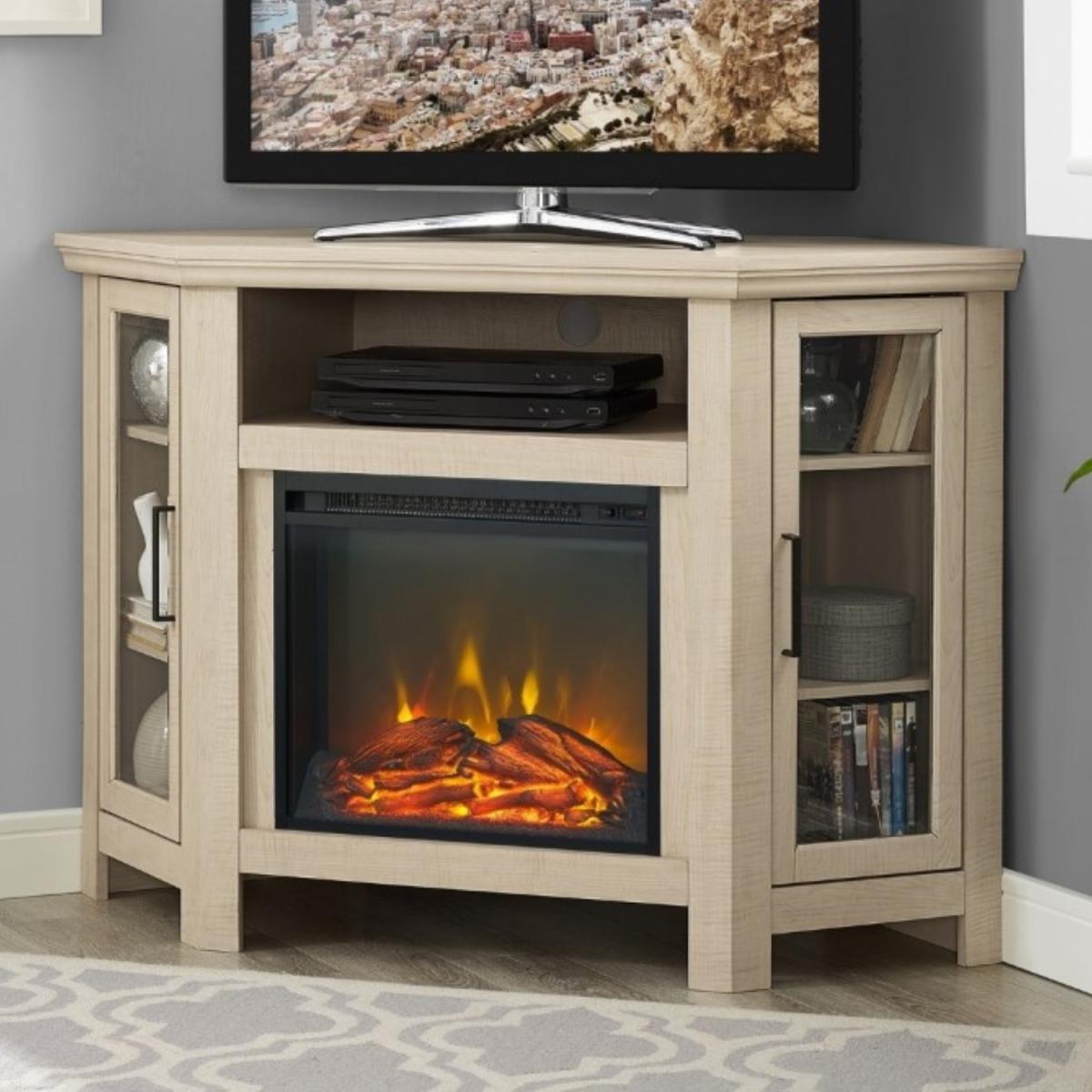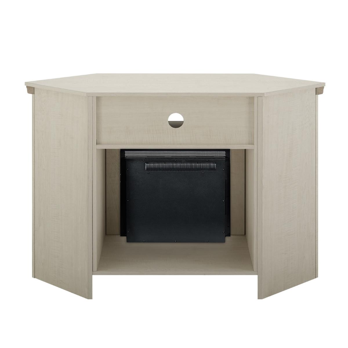Corner Wooden TV Unit with Electric Fire Insert & Cupboards