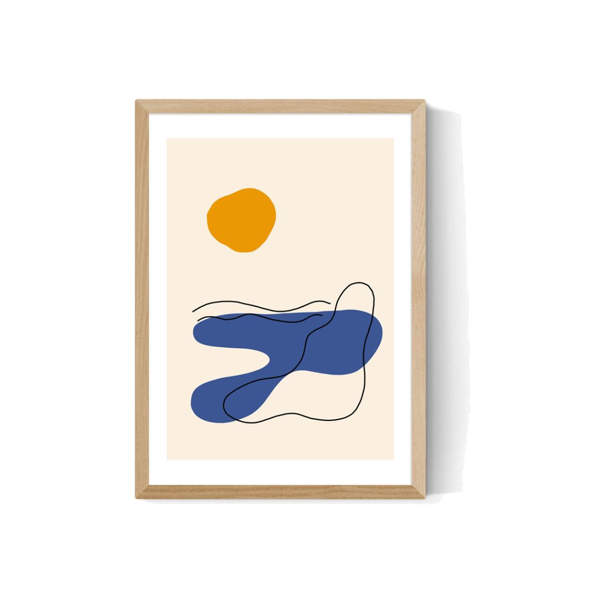 Boldly abstract, this sun, sand and sea graphic print by Sifa Mustafa is wonderfully tranquil and an ideal breathing space on your walls. Additional Information: Oak Obeche Wood Frame A2 Sized Print Giclee printing process lasting up to 70 years from fading 210gsm acid free archival paper with a digital white border For every print sold a percentage of profit is donated to Cool Earth, a charity combating deforestation in the rainforest Dimensions: H: 73 x W: 52 x D: 8 cm Materials: Solid obeche wood frame, acrylic glaze and 210gsm acid-free archival paper Assembly Required: No Care Instructions:Wipe clean with a soft dry cloth