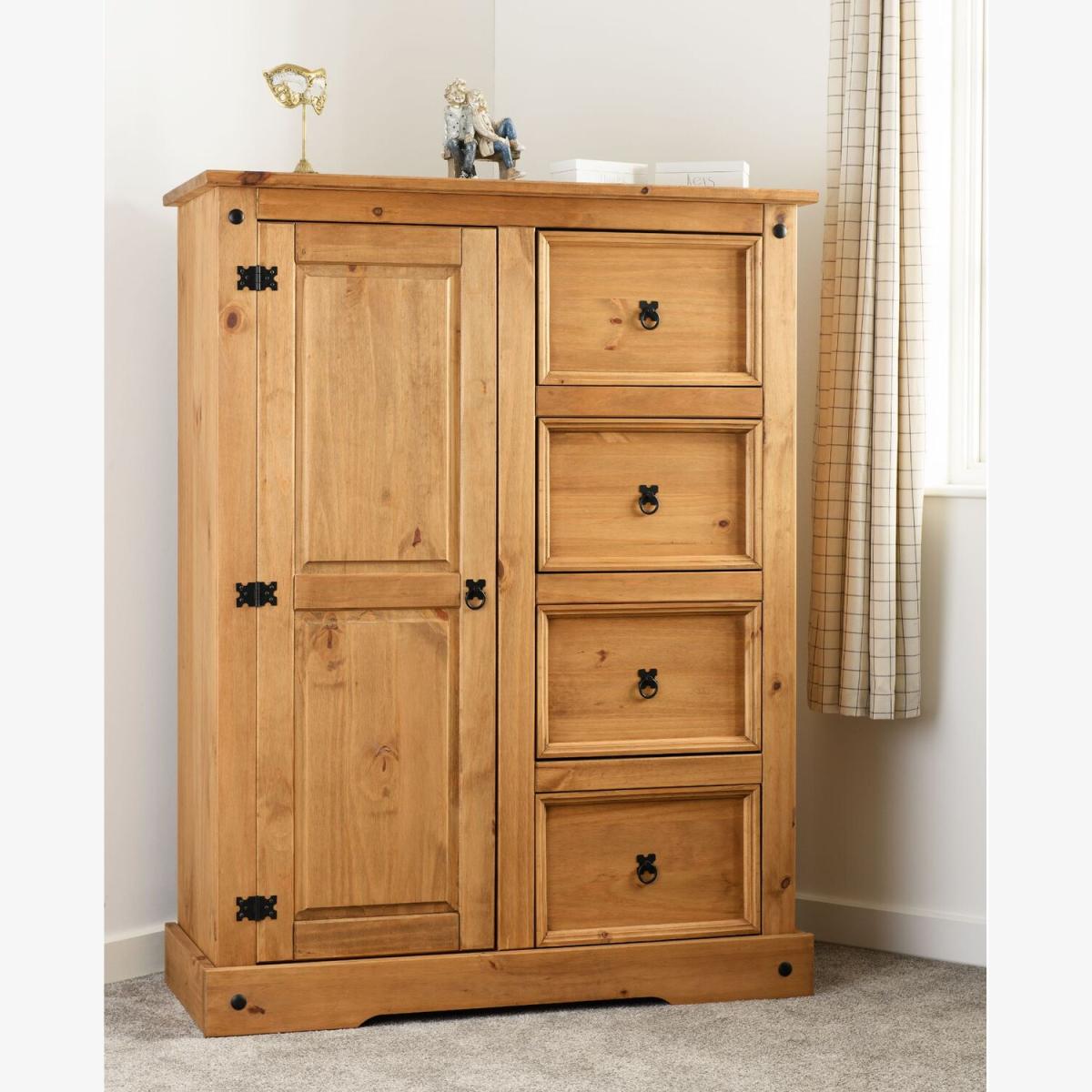 The Corona 1 Door 4 Drawer Wardrobe boasts ample storage with drawer room and hanging space too. This beautiful distressed waxed pine wardrobe will bring a whole new look to your home. The attractive design with metal drop handles and the rich colour of the wood make it a superb piece of furniture to look at that is also highly functional. With four spacious drawers and pine hanging rail behind the door, there is plenty of room to store your belongings. UK Mainland delivery only, between 9am - 9pm (weekdays) the courier will contact you on the day of delivery to offer a time slot. This takes place within 10 working days (Ground floor only). Please also ensure that we have a note of your up-to-date address and contact information, including daytime phone number and email address to be passed to the couriers.