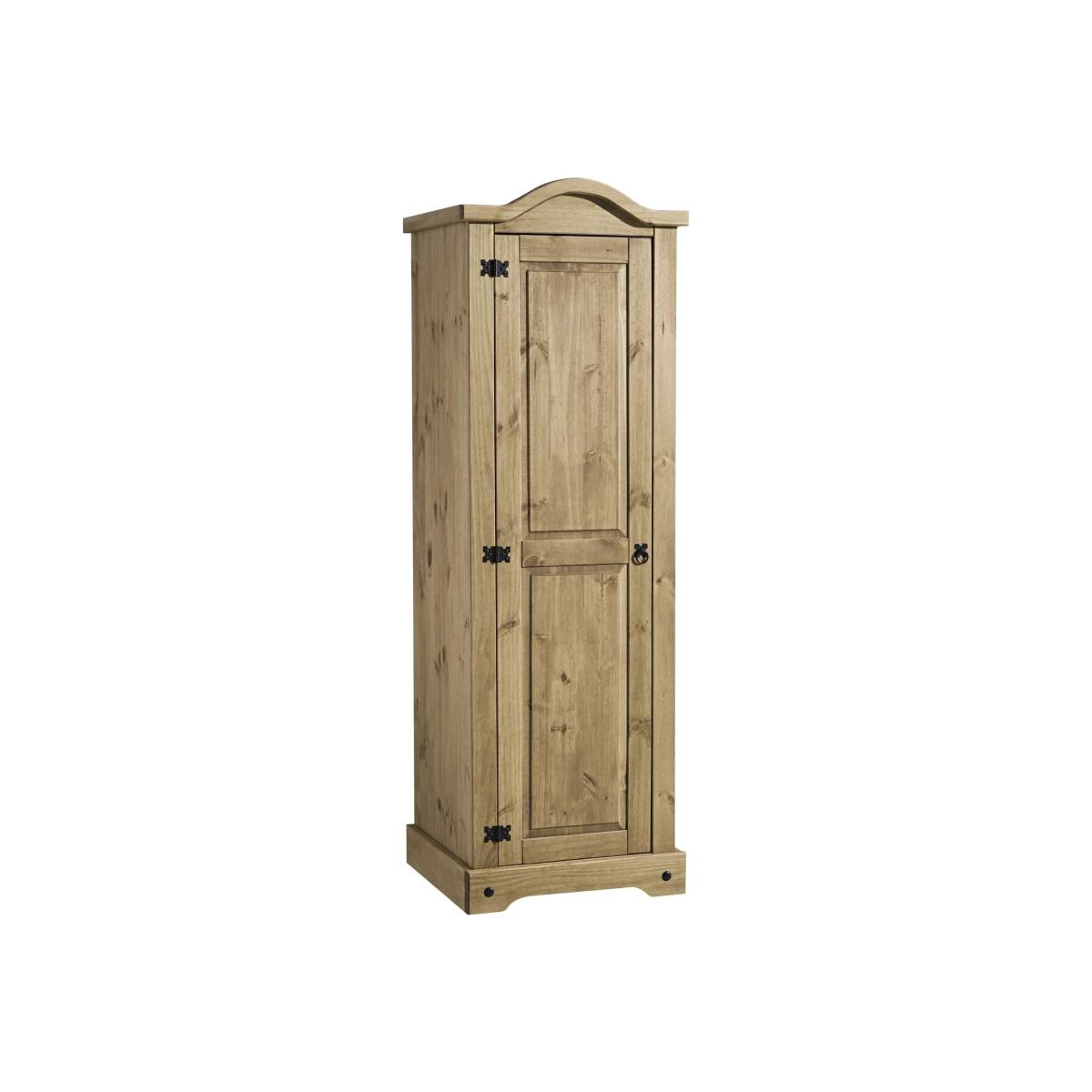 . Dimensions W60 x D56.5 x H184.5 cm Key Features Stylish antique design Metal hinges and handles complete the antique look. Large storage space Internal hanging rail and top shelf. Made from solid pine. Perfect for the bedroom. Part of the popular Corona range