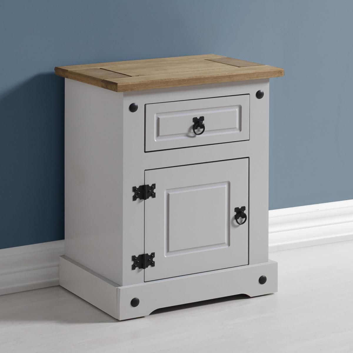 Corona 1 Drawer 1 Door Bedside Table in Grey/Distressed Waxed Pine