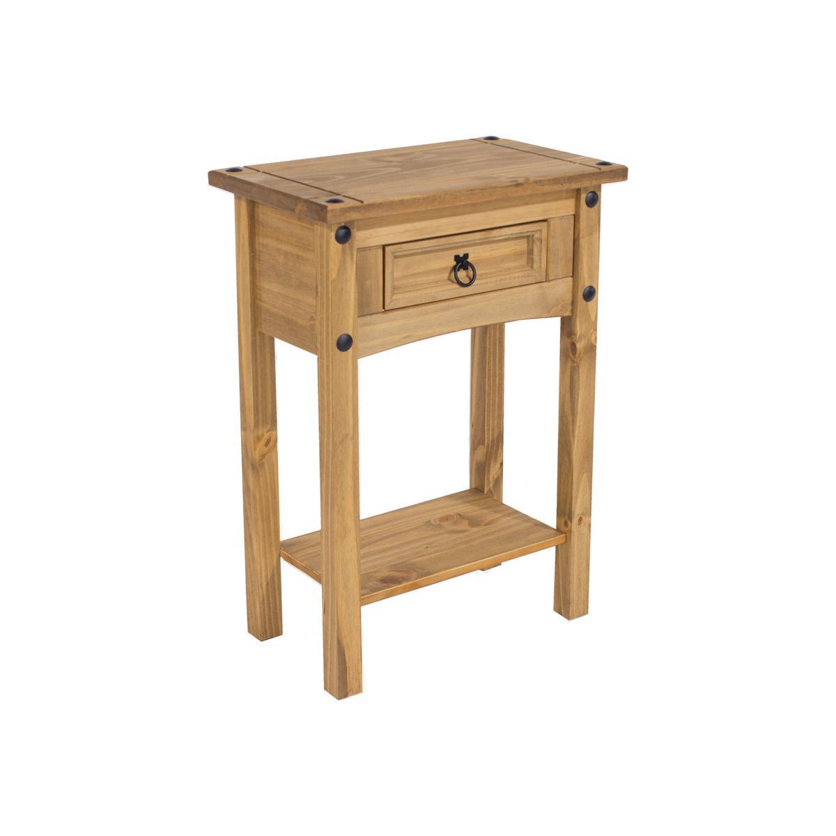 Made from responsibly sourced South American pine, the Corona 1 Drawer Hall Table With Shelf features all the elements of Mexican style furniture in a practical and affordable way. Boasting true craftsmanship, the Corona also features metal detailing and real dovetail drawers. Its simple, sturdy style ensures it is highly durable without losing its attractive look. Item: Hall Table only. Please note, unfortunately we cannot deliver this item to the Channel Islands.